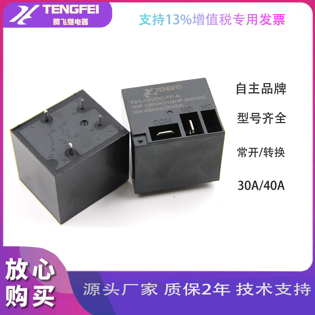 Реле для водонагревателя Tengfei T91, 30А, высокомощное, 4-контактное, 250В переменного тока, 12В/24В/5В/9В постоянного тока, высокотоковое