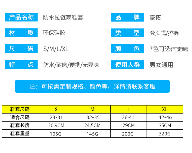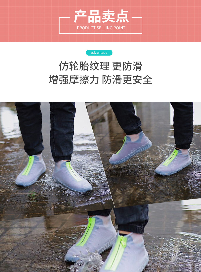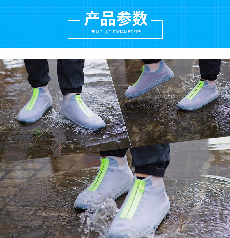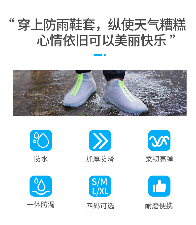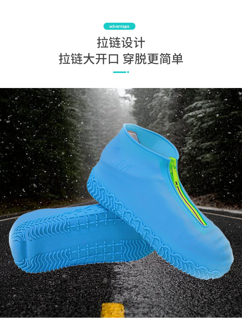 新款防水拉链硅胶鞋套防雨防滑加厚耐磨户外便携儿童男女雨鞋套