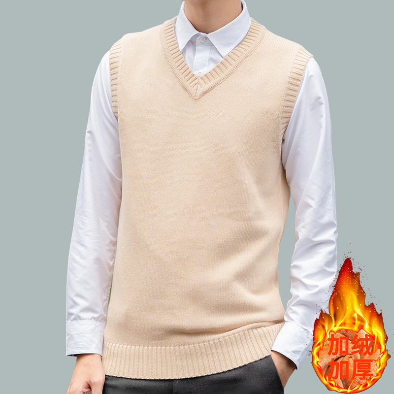 Новый зимний Повседневный утепленный пуловер в Корейском стиле с флисовой подкладкой, свитер, жилет с V-образным вырезом, свитер, мужской жилет