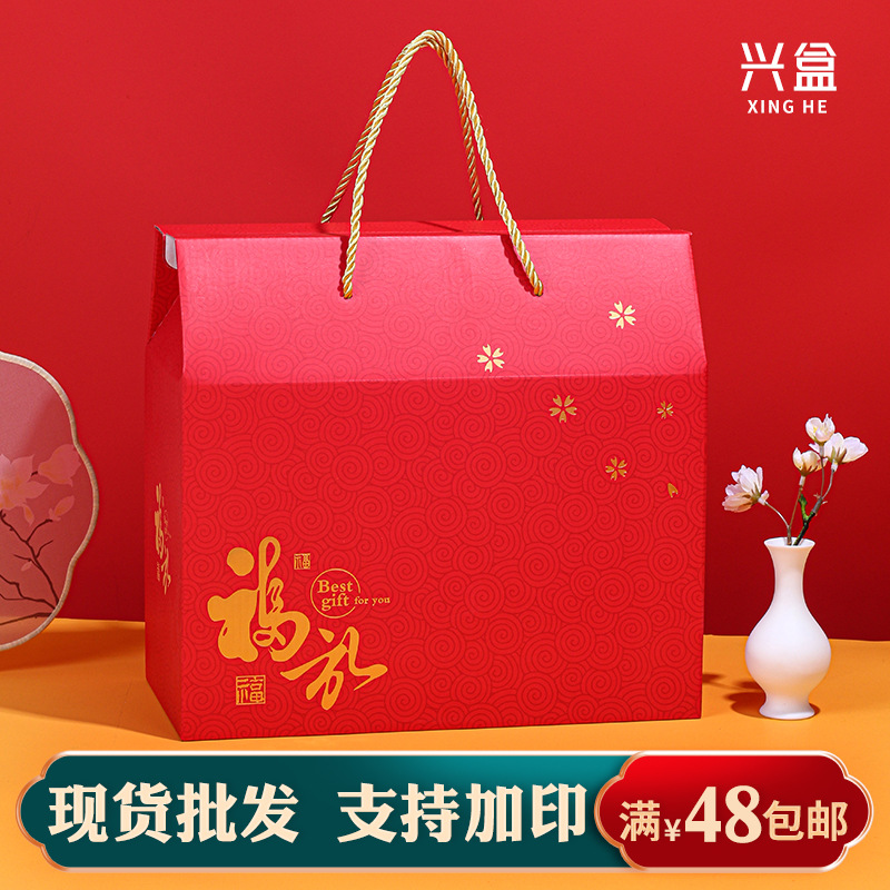 Упаковочная коробка для Праздника Весны с принтом: орехи, морепродукты, сухофрукты, продукты питания, новогодние товары, готовые блюда, подарочная пустая коробка с золотым тиснением