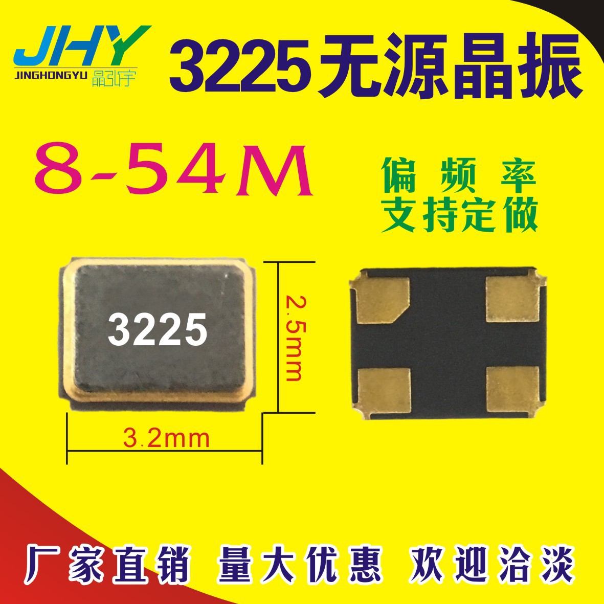 Производитель поставляет пассивные SMD-кристаллические генераторы 3225 с частотами 8М, 12М, 16М, 24М, 25М, 26М, 27М, 30М, 32М.