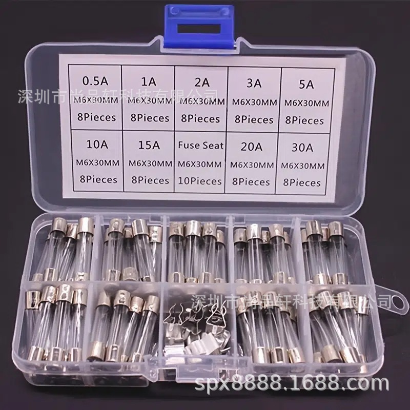 72 шт. 6x30 мм стеклянный предохранитель 0.5a-30A 6*30 мм образец трубки предохранителя 72