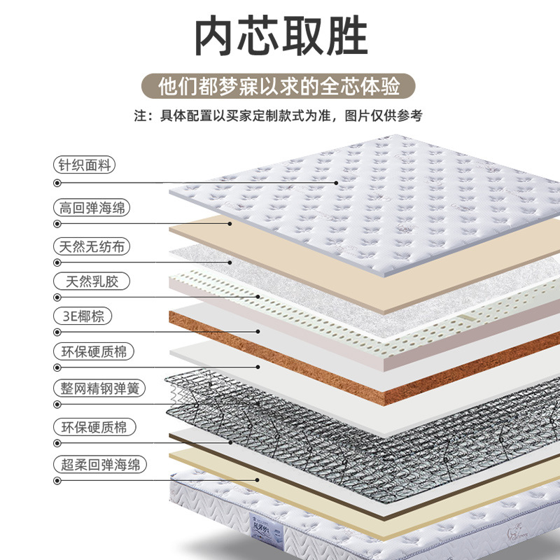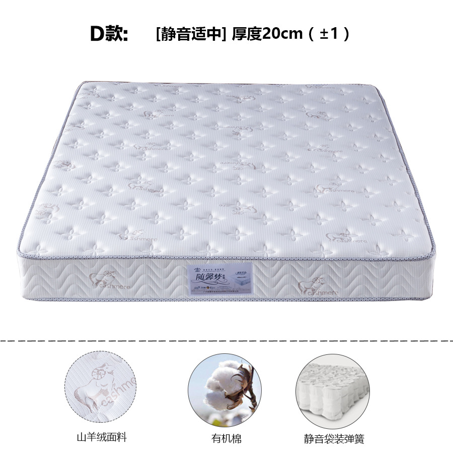Умеренный тип А: пружина Гинпей 20см.; Тип B мягче: пружина Glienpa от средней до мягкой + латекс 21 см.; Тип C более жесткий: пружина Gienpai от умеренной до жесткой + 3E Yimengwei 22 см.; Тип D: Умеренно бесшумная, независимая карманная пружина 20 см.; Модель E: Бесшумная и мягкая, независимая карманная пружина + натуральный латекс + 21 см.; Модель F: Бесшумная и прочная, независимая пружина кармана + 3E Yemo Wei + 22 см.; Модель G: мягкое и жесткое использование, натуральный латекс + независимая карманная пружина + 3E Yimengwei + 24 см.