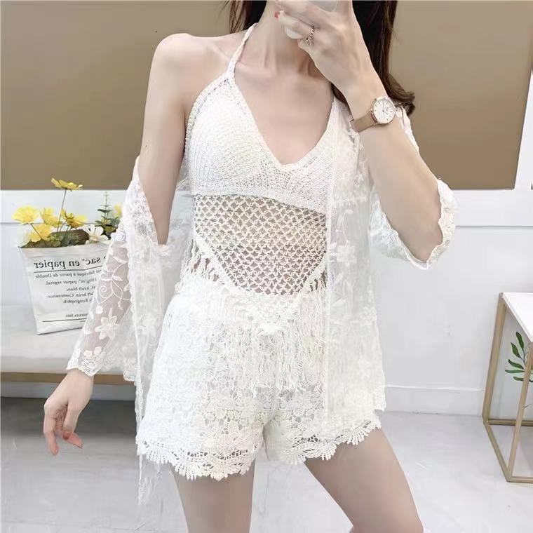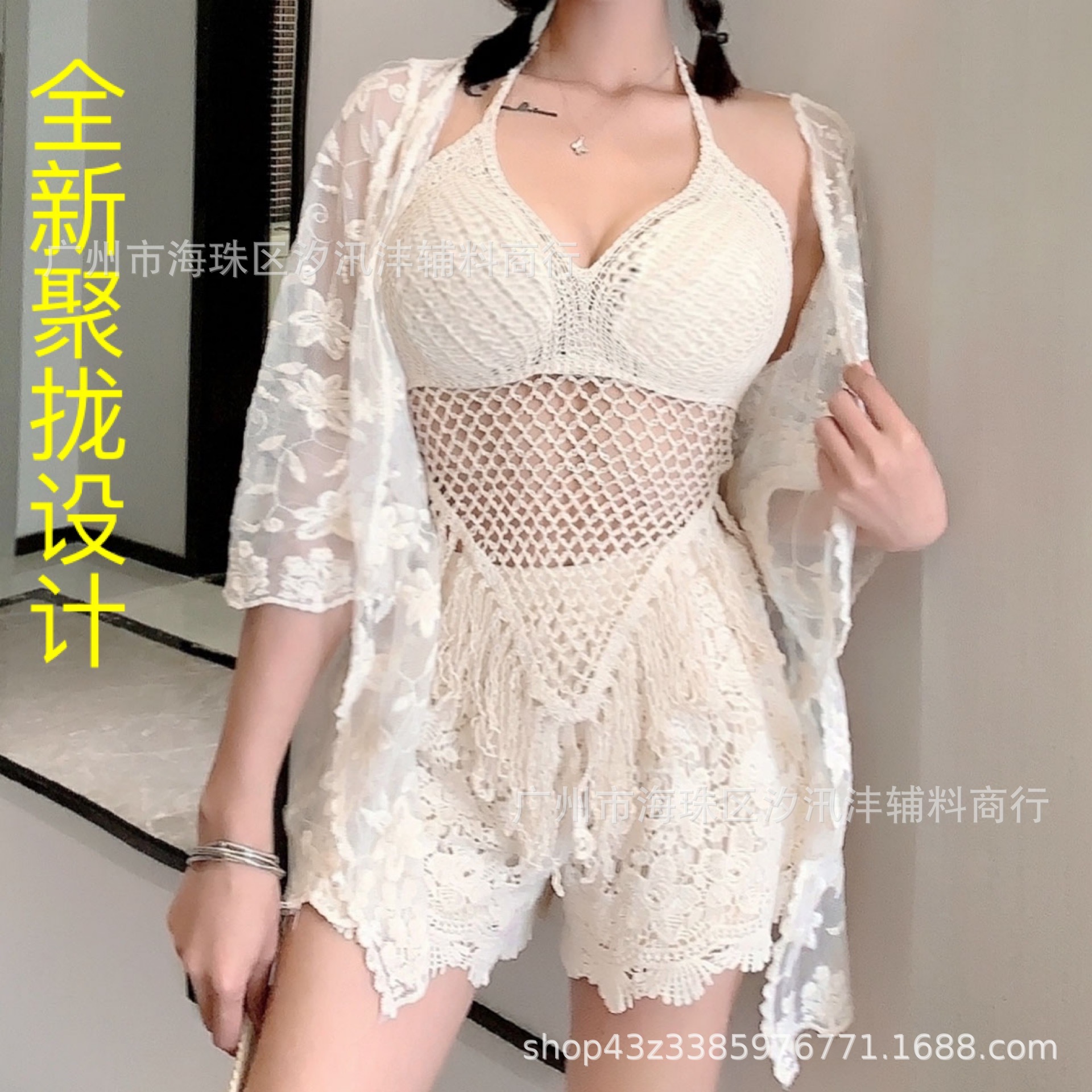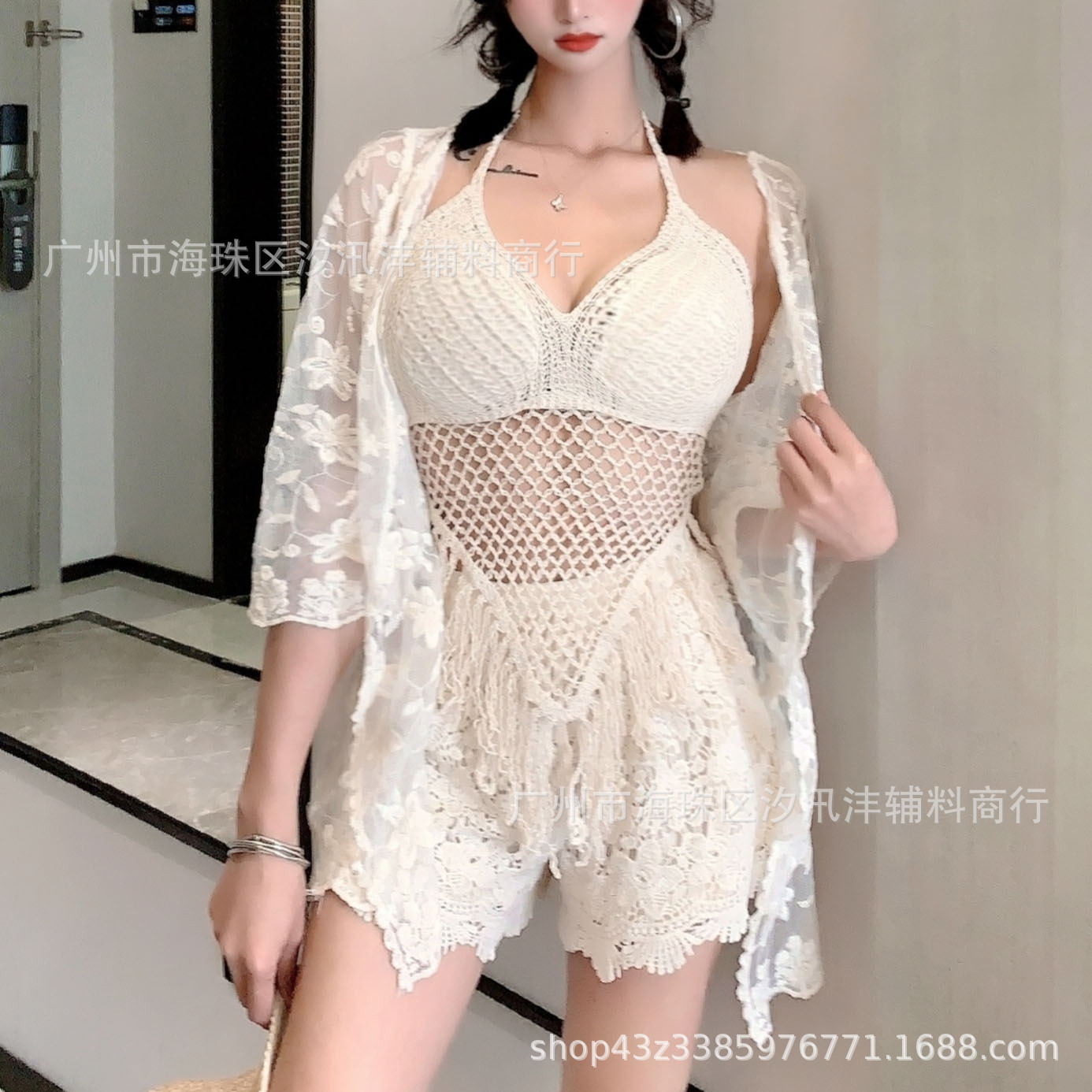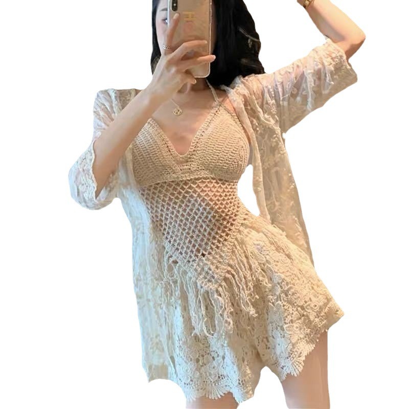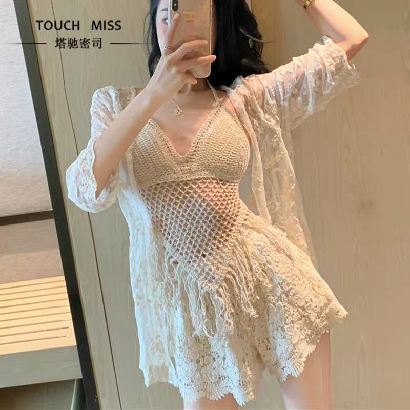 Купальник-бикини из трикотажа с ажурной вязкой для отдыха в Юньнани, для пляжа и горячих источников, с защитой от солнца, повседневный, консервативный, облегающий