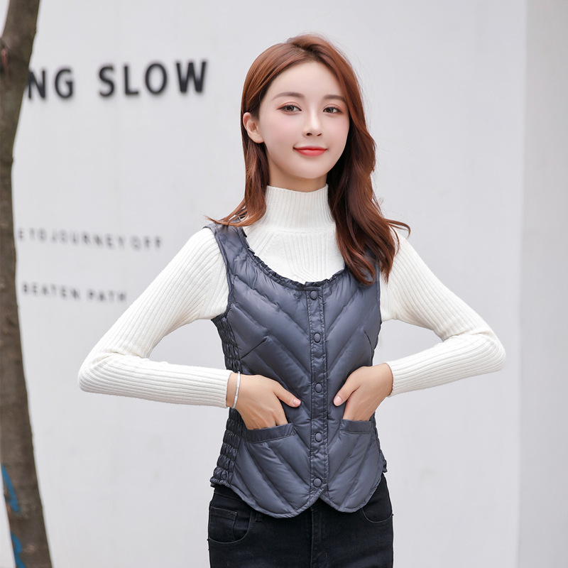 Женский повседневный пуховый жилет для осенне-зимнего сезона, в корейском стиле, легкий, приталенный, без рукавов, дропшиппинг.