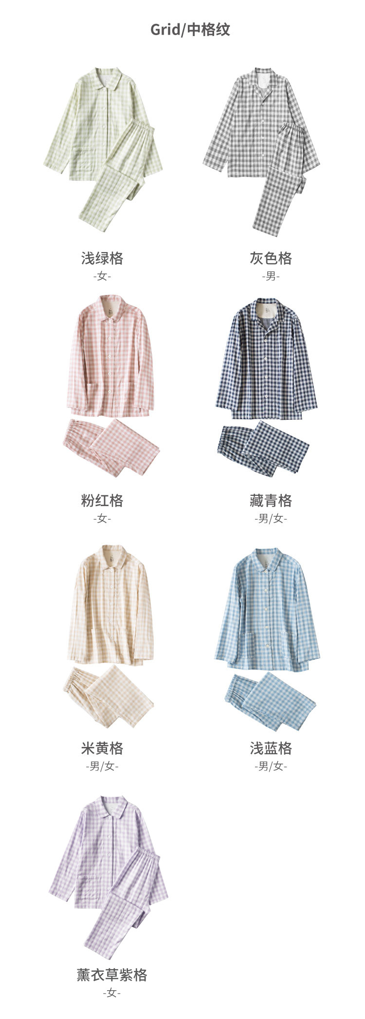 Двухслойная пижама из пряжи без принта без бокового шва в японском стиле в хорошую клетку в мелкую горошек Весна и лето новый костюм для домашней одежды для пар