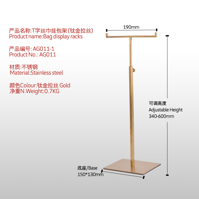 Металлическая Т-образная вешалка для сумок Торговый центр Стеллаж для сумок из нержавеющей стали Крепежная стойка для сумок Реквизит для сумок Регулируемый
