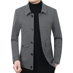2025 весенне-осеннее новое однотонное повседневное мужское пальто, шерстяное пальто, мужское теплое шерстяное пальто с воротником-стойкой и жилетом