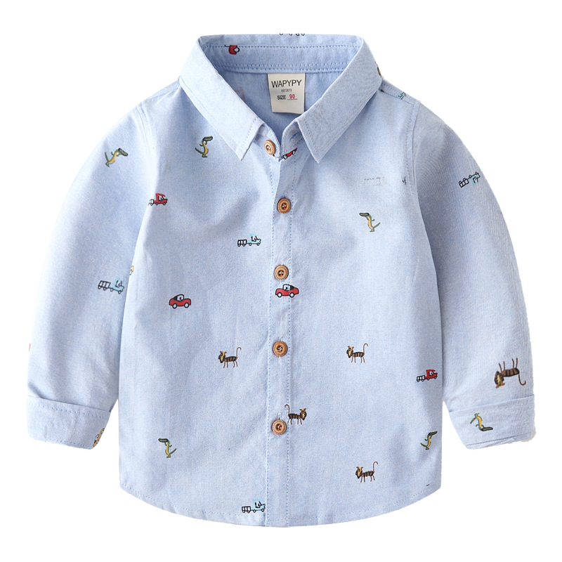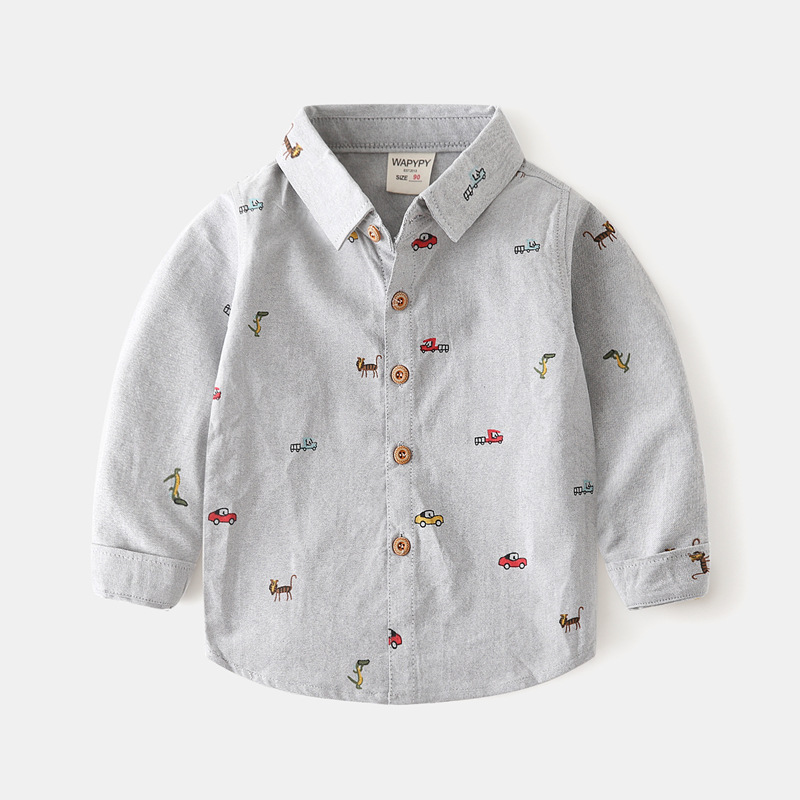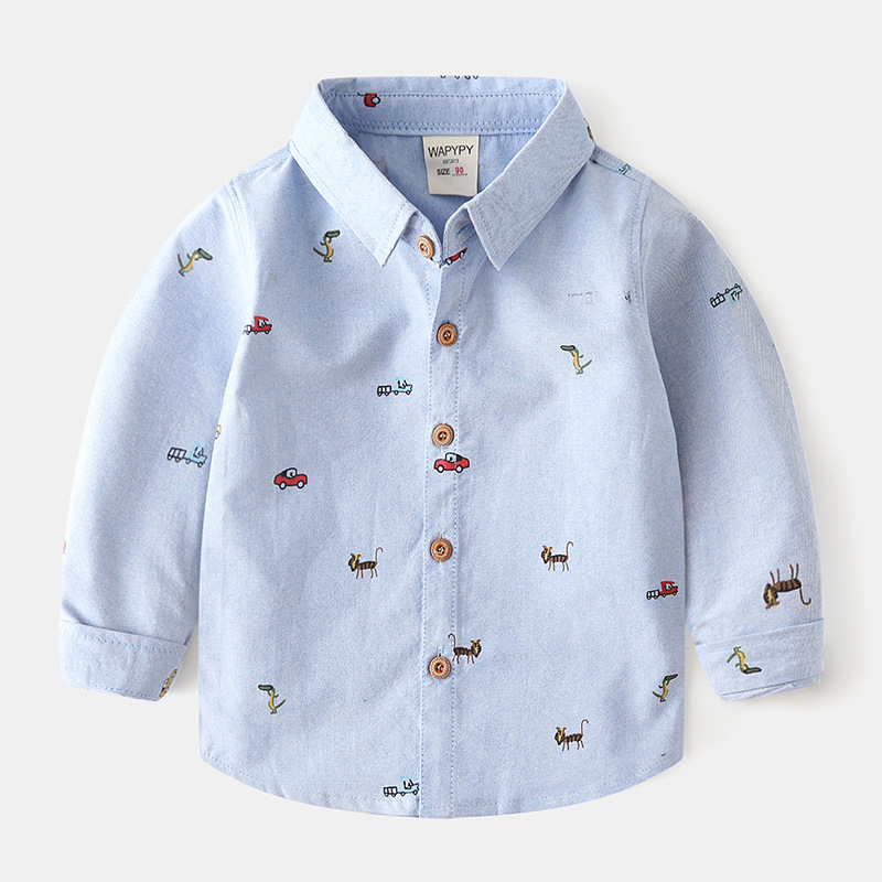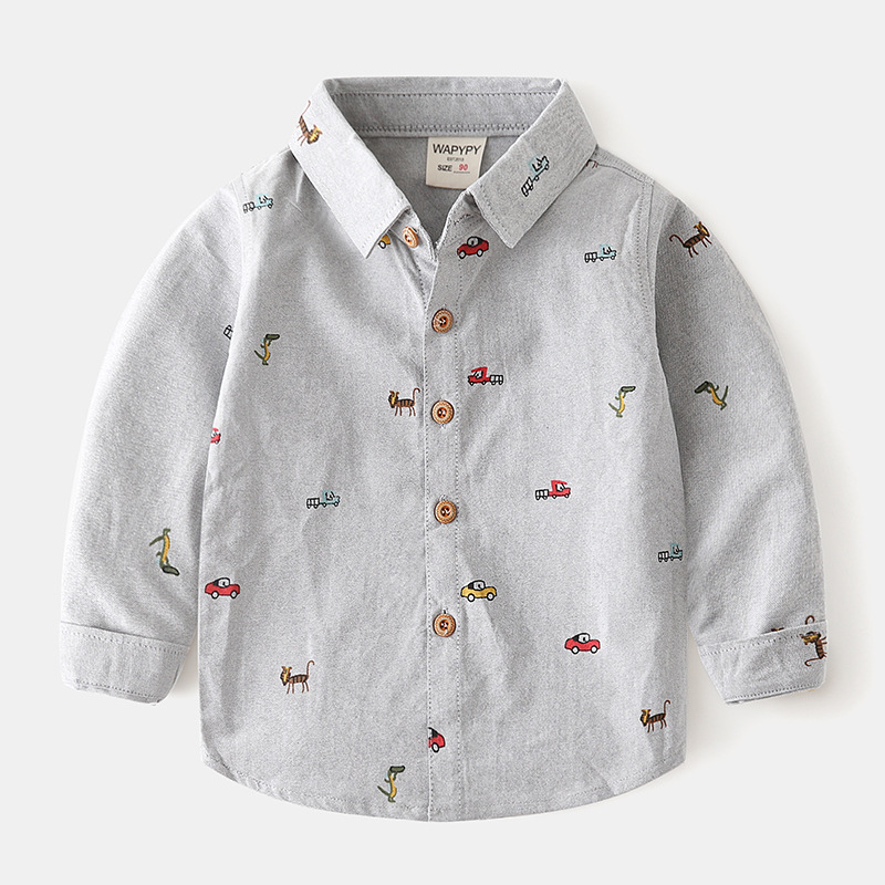 Рубашка с длинными рукавами для мальчиков, Осенняя детская одежда оптом, детская тканая оксфордская рубашка, одежда с мультяшным принтом оптом
