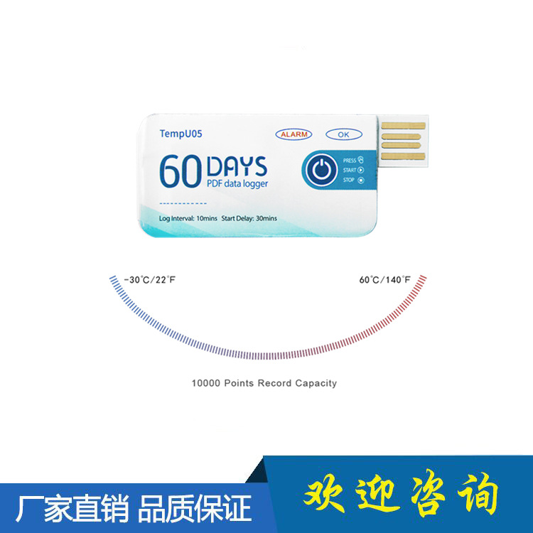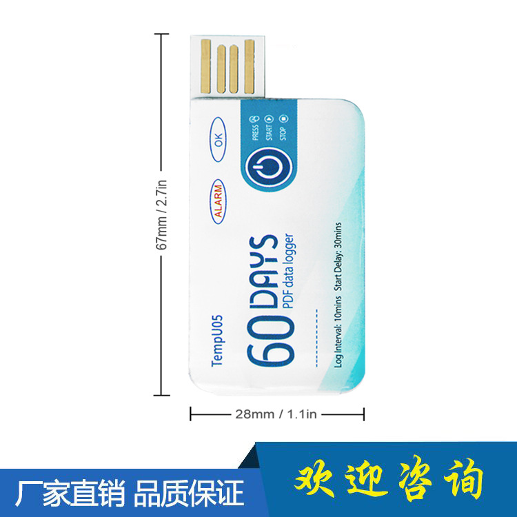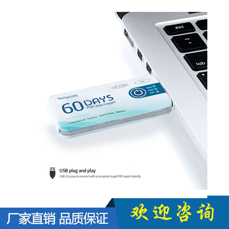 - 撕掉防水包装袋将设备插入电脑USB接口,PDF文件生成过程中正常指示灯(即绿灯)与报警指示灯(即红灯)会轮流亮起,当文件生成完毕,正常指示灯(即绿灯)会持续亮起直到将记录仪从电脑上取出。