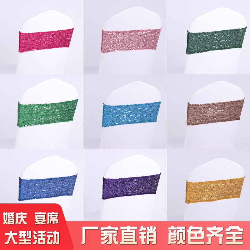 新款欧式弹力绷带亮片蝴蝶结酒店婚庆宴会桌椅套系带免系椅背花