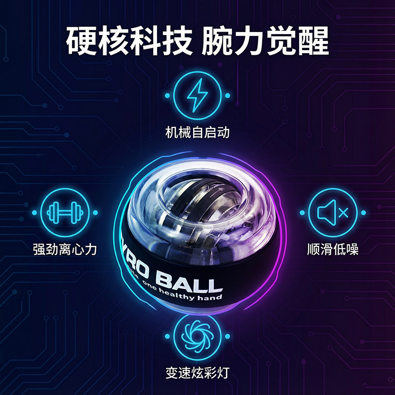 Мяч для тренировки силы запястья от производителя, для развития мышц рук, с самозапускающимся светом, цветной, платиново-черный, гиро-массажер для хвата