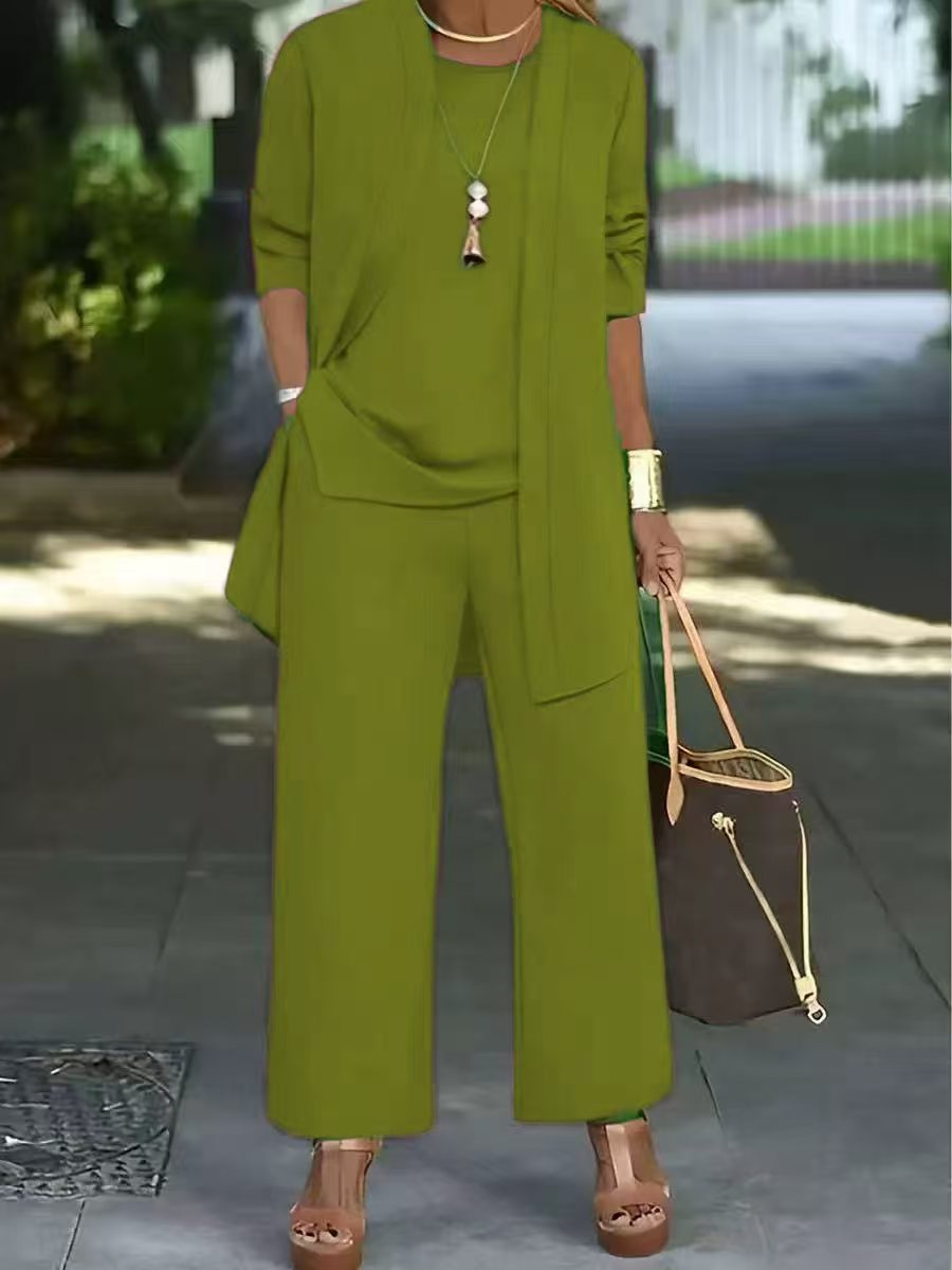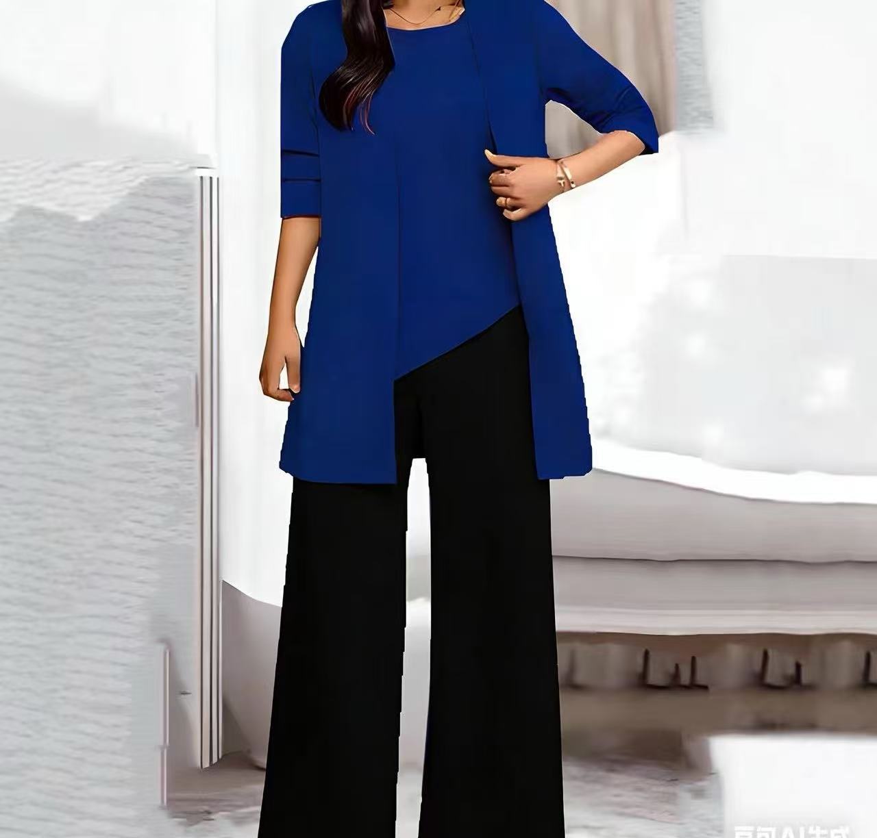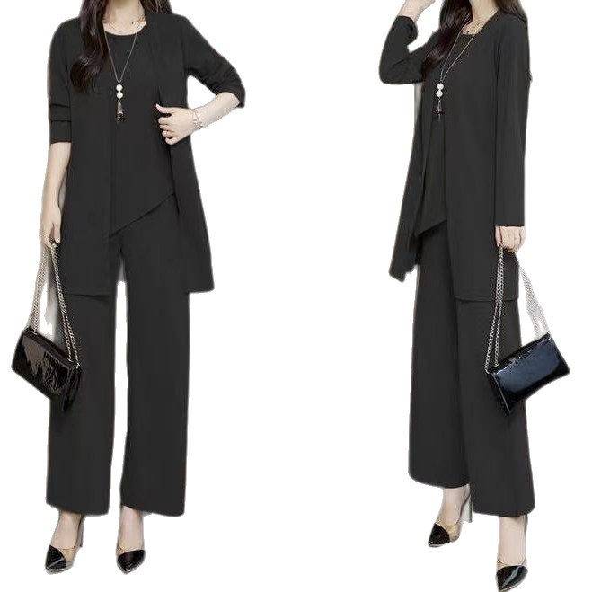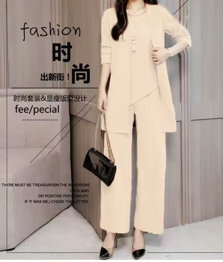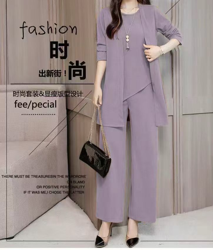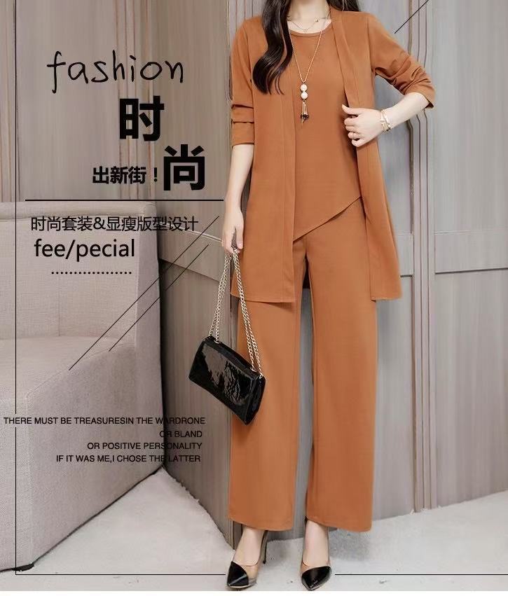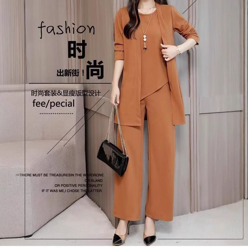 Трансграничные поставки 2021 Весна и осень новая богатая жена в иностранном стиле Тонкий, уменьшающий возраст модный костюм больших размеров, Женский комплект из трех предметов