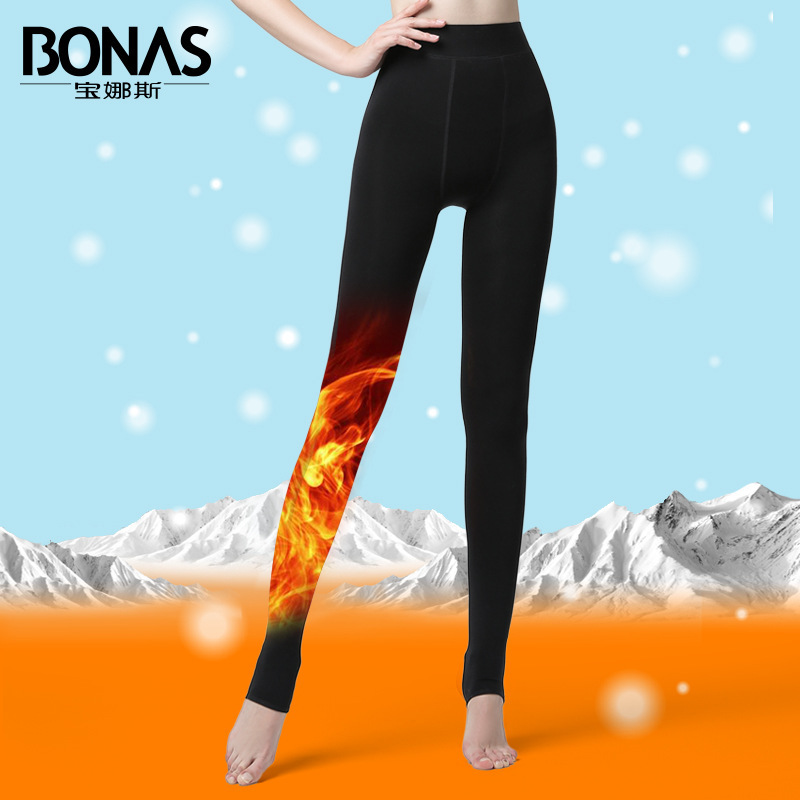 Bonas осенне-зимние бамбуковые угольные нагревательные пряжи с самонагревающейся флисовой подкладкой, утолщенные шаговые Леггинсы 280 г