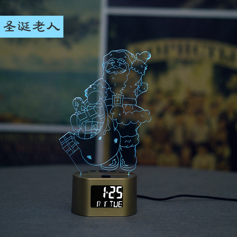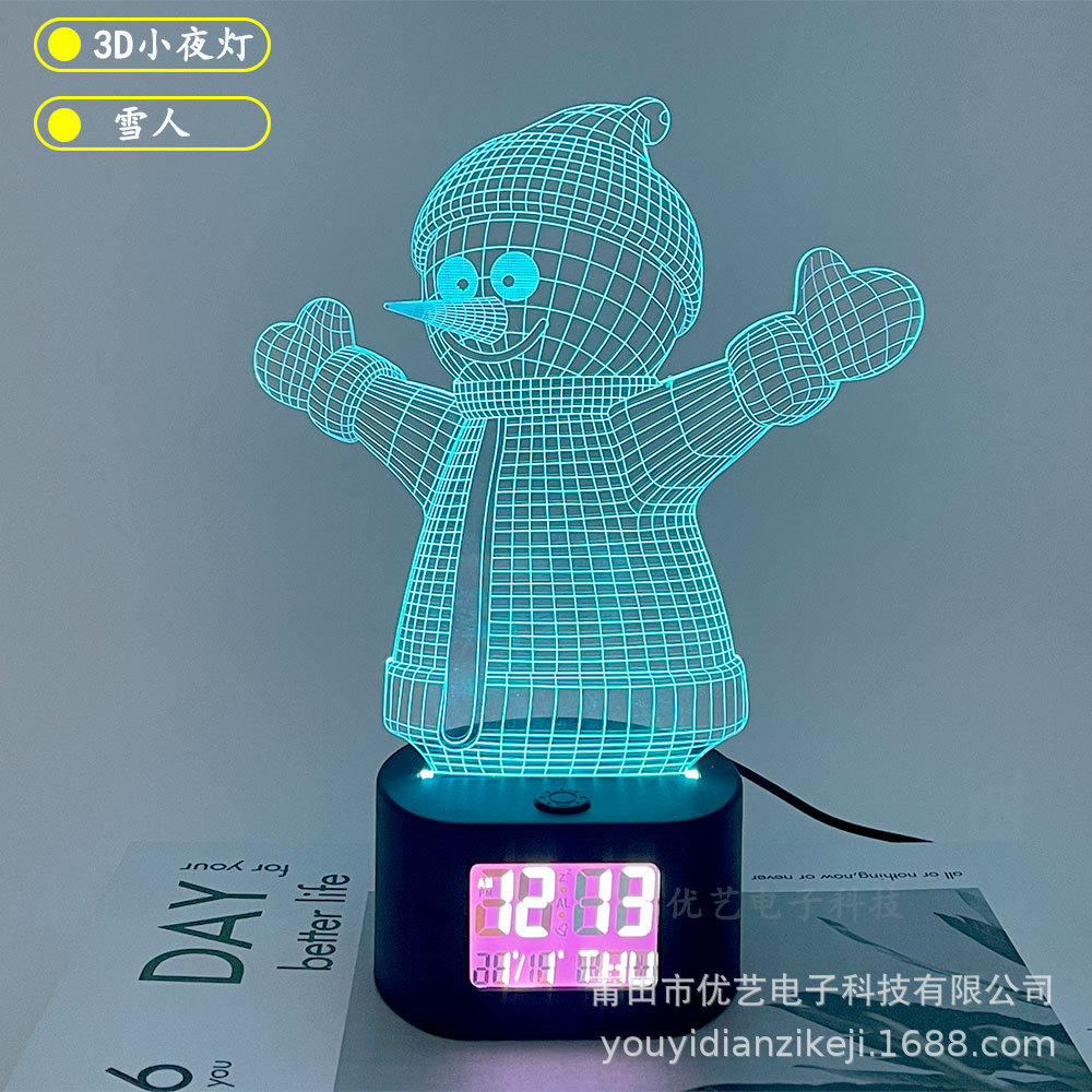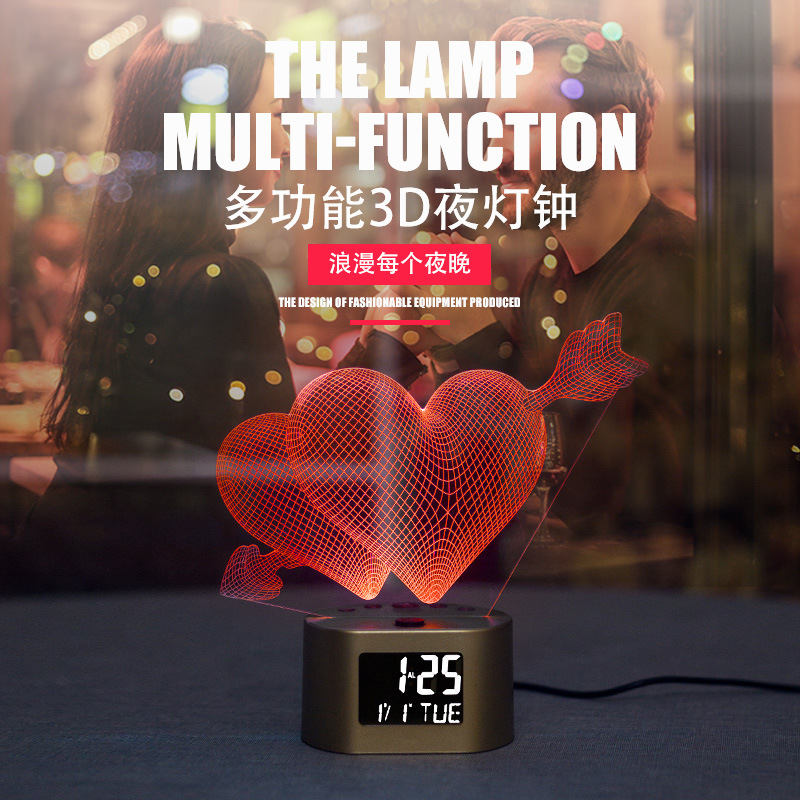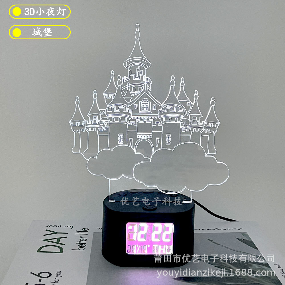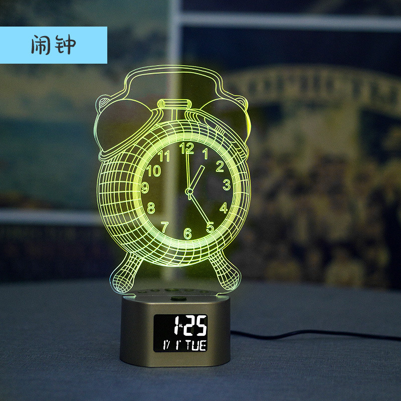 产品介绍:此产品为一款多功能家居创意摆件时钟小夜灯,适用于多种环境,客厅摆件,节日定制,以及各种大型舞会及场所使用的一款3D氛围小夜灯。