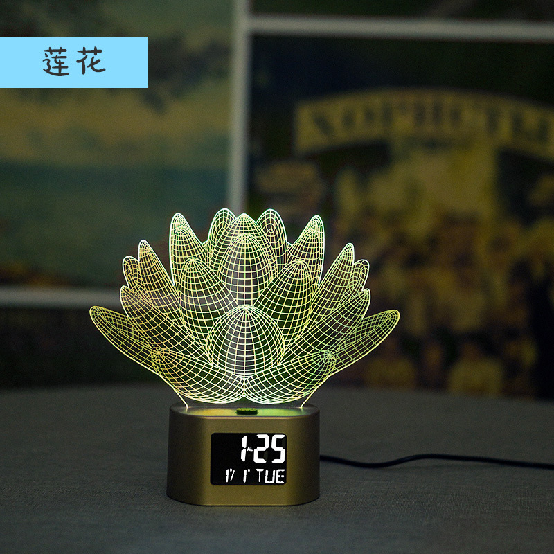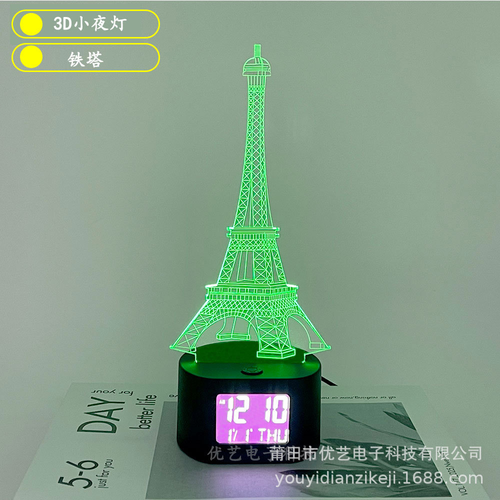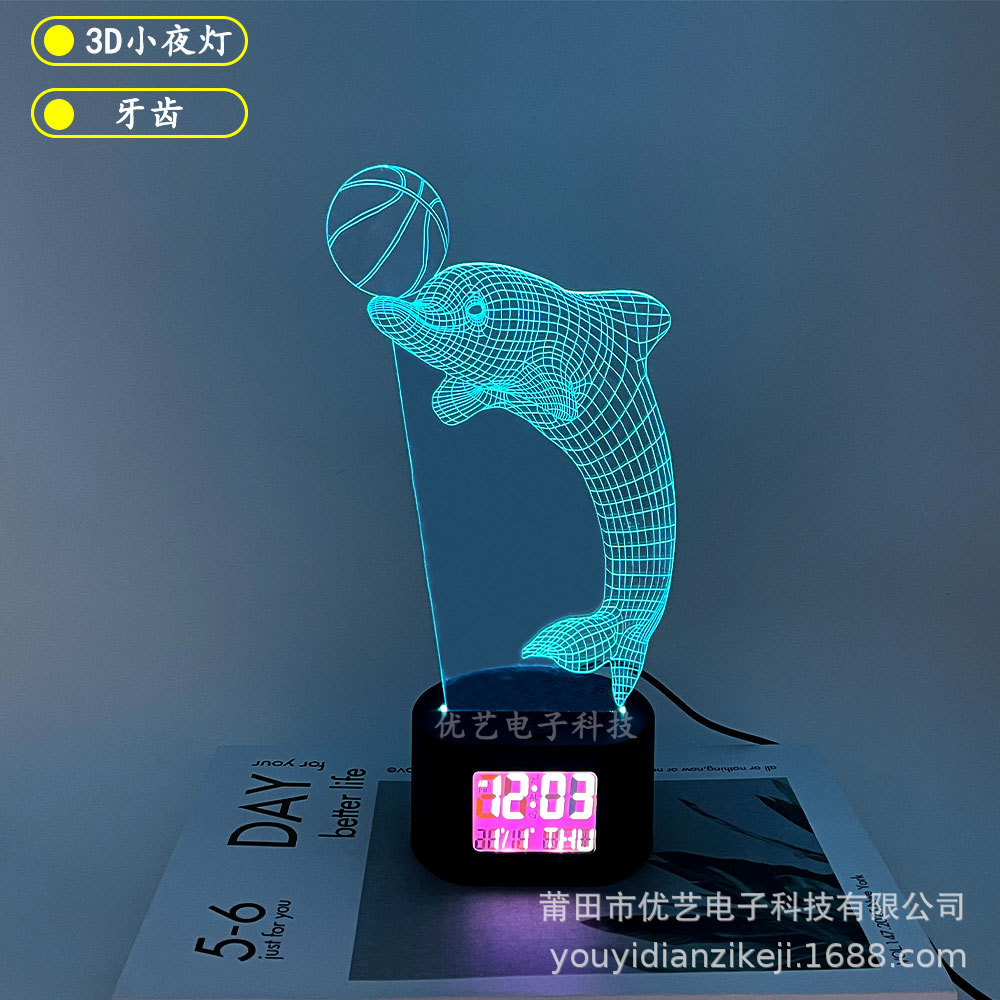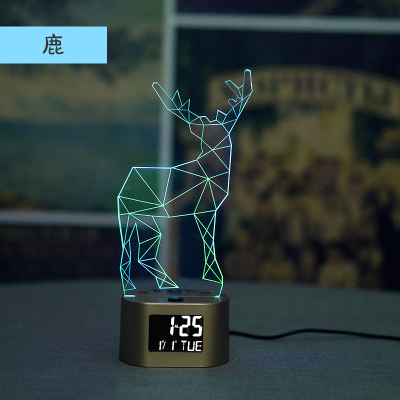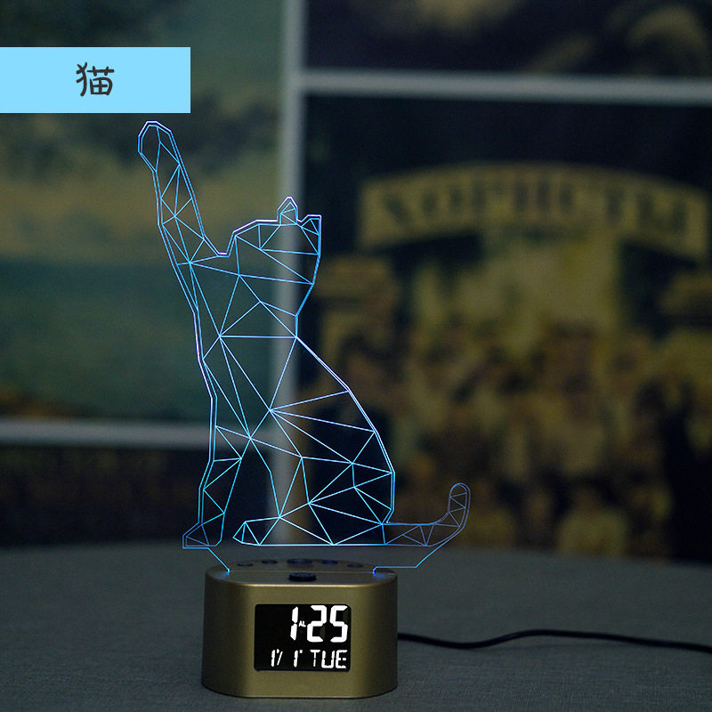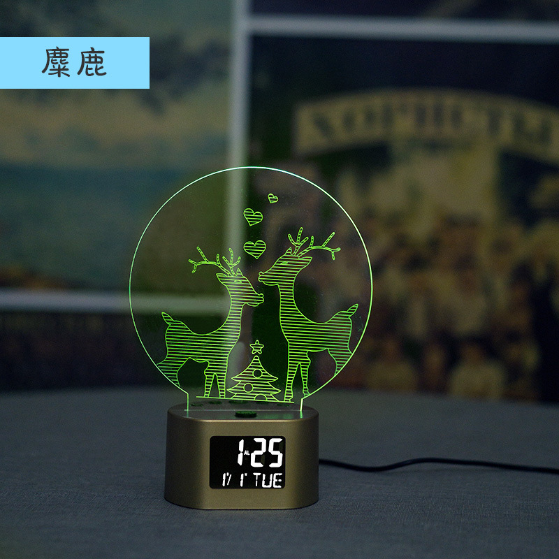 产品介绍:此产品为一款多功能家居创意摆件时钟小夜灯,适用于多种环境,客厅摆件,节日定制,以及各种大型舞会及场所使用的一款3D氛围小夜灯。