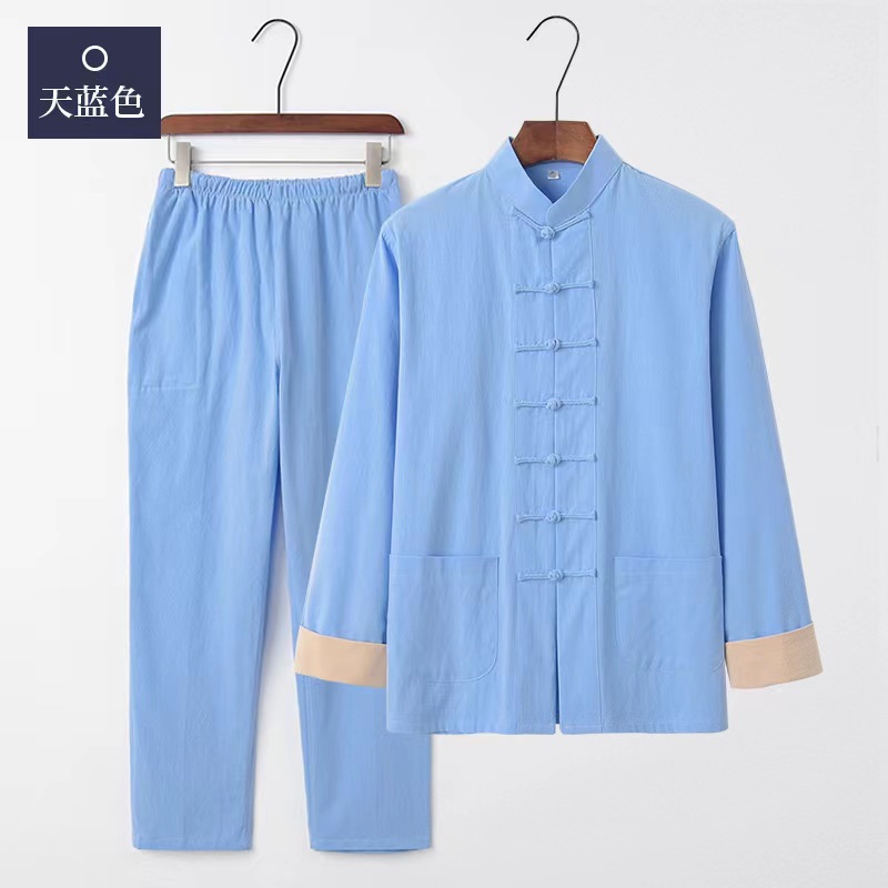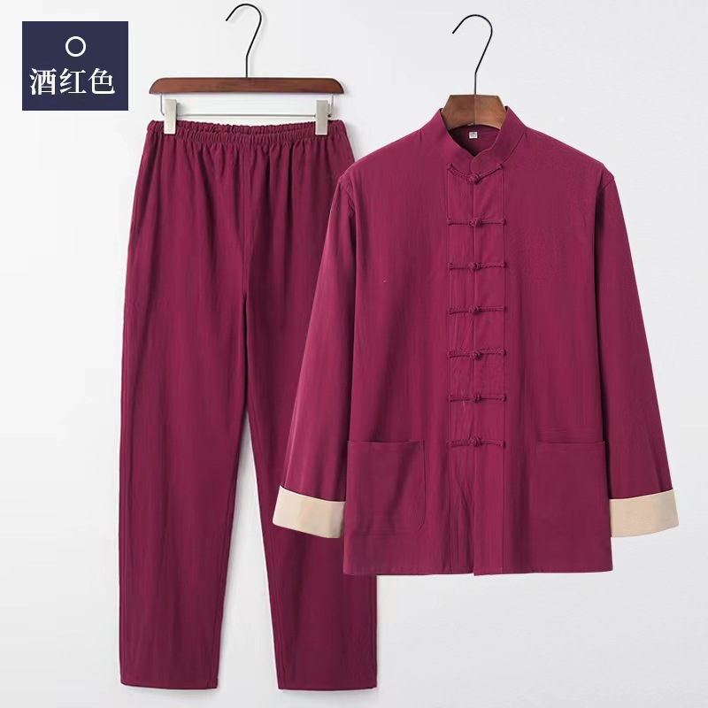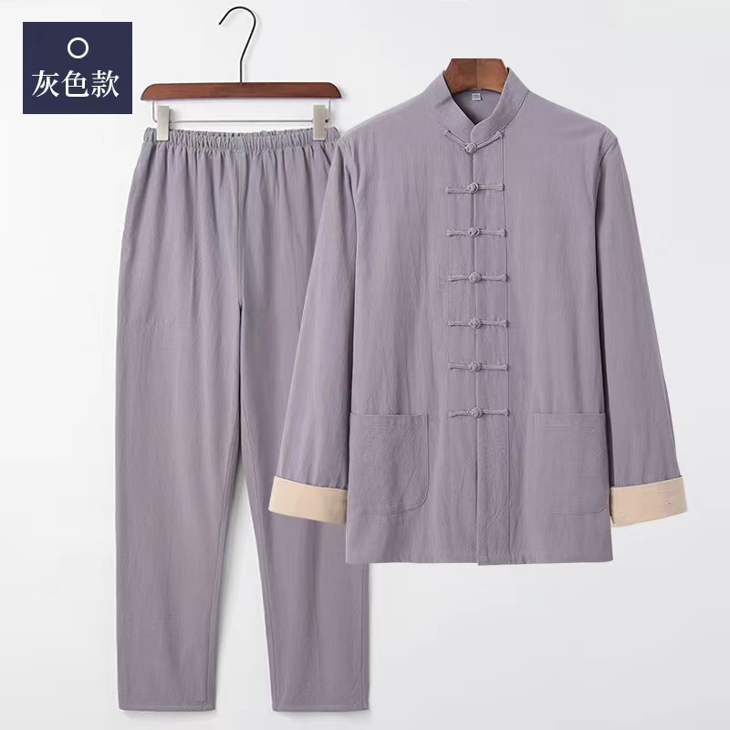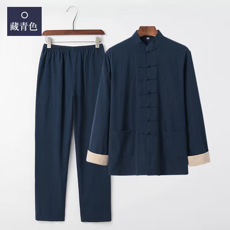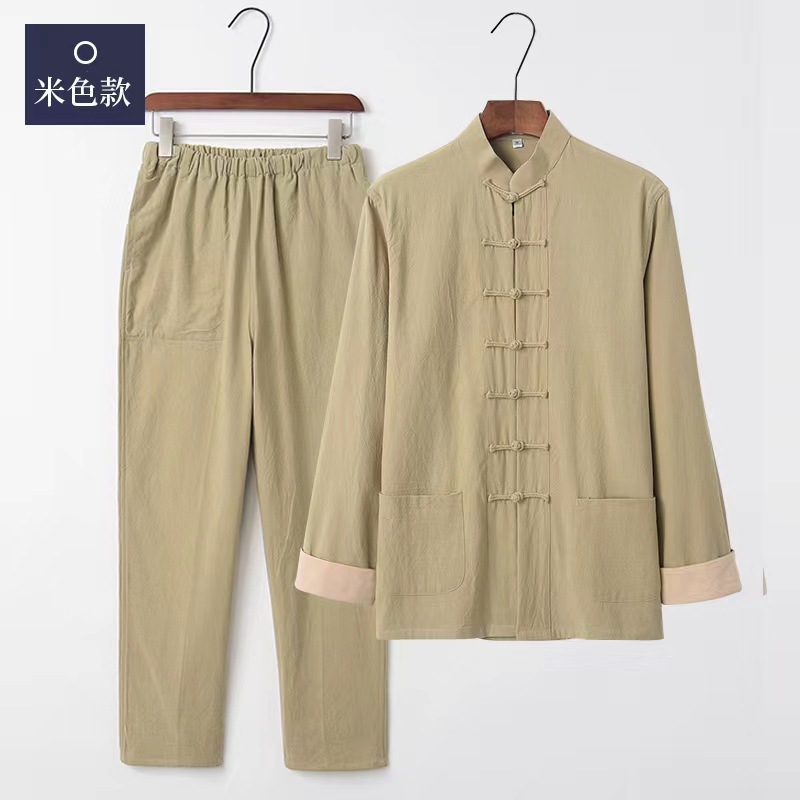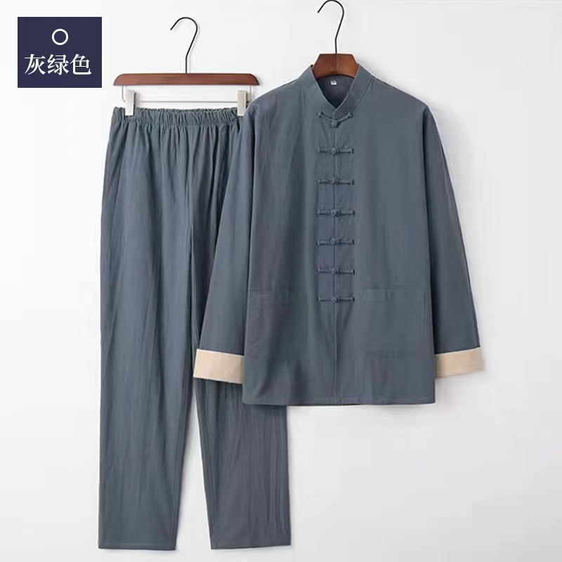 Мужской комплект в китайском стиле из хлопка и льна для весны и осени: традиционный костюм Тан с длинными рукавами, ретро-вышивка, одежда в стиле Дзен, наряд для мирянина, традиционное мастерство, оптом