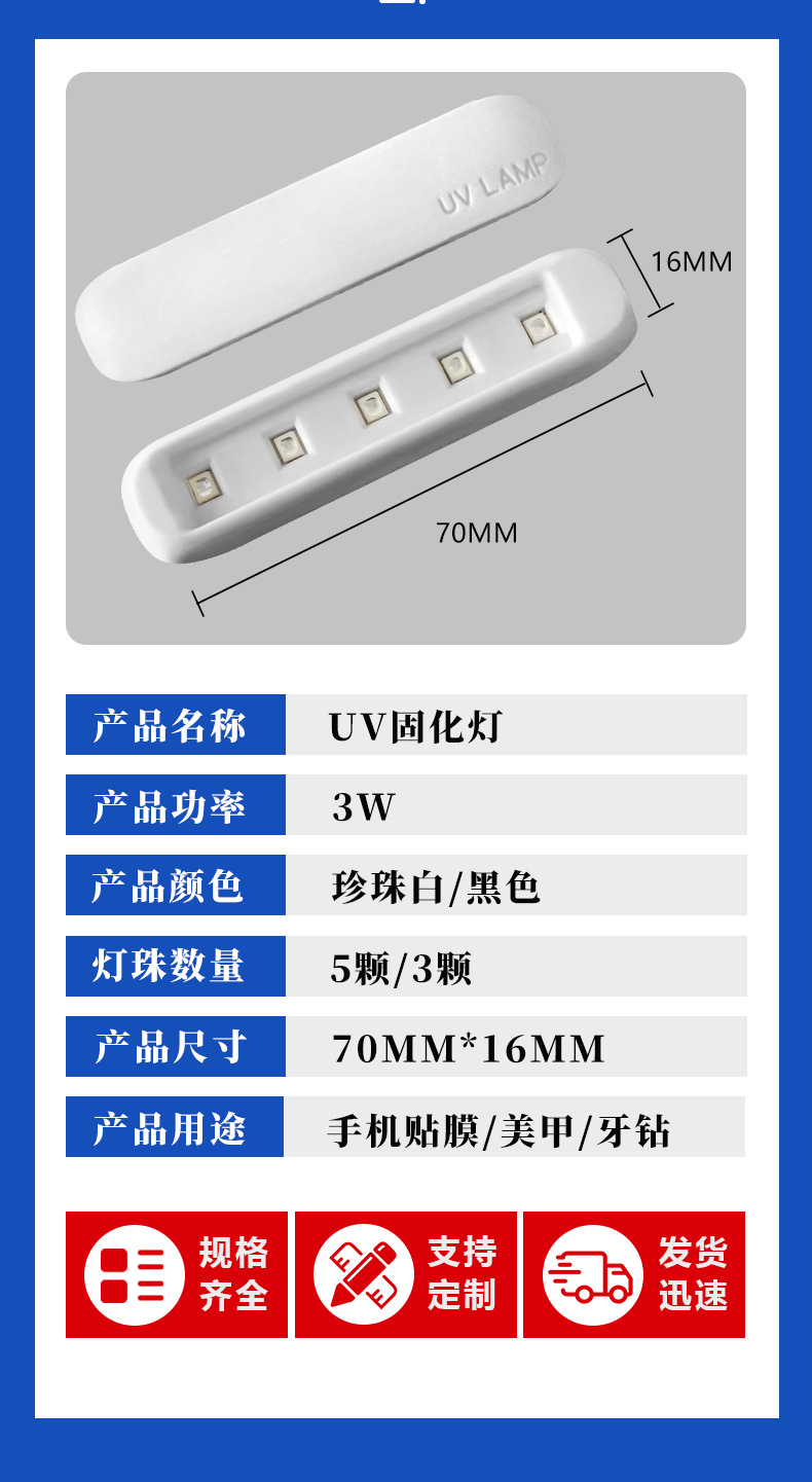 УФ-лампа для быстрой сушки защитных пленок для телефонов, фиолетовая лампа для полимеризации гель-лака, прямая лампа для нейл-арта
