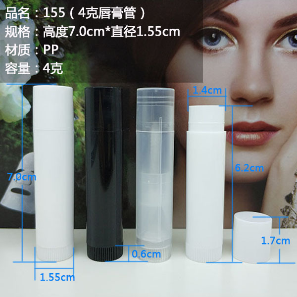165#(5 г с плоской крышкой); 165-1#(5 г с круглой крышкой); 155#(4 г тюбика для губной помады)