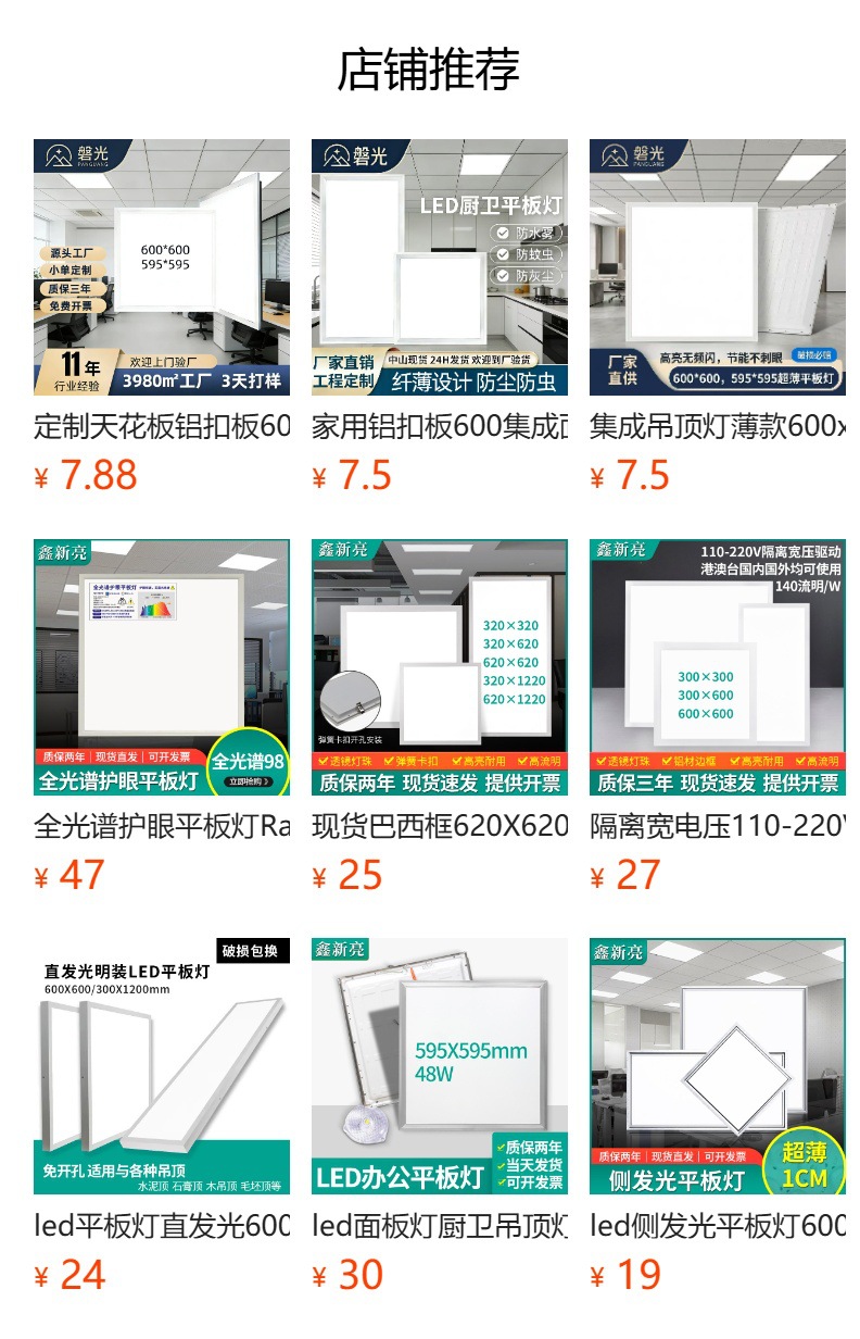 led平板灯600×600直发光面板灯办公室铝扣板灯厨卫灯集成吊顶灯