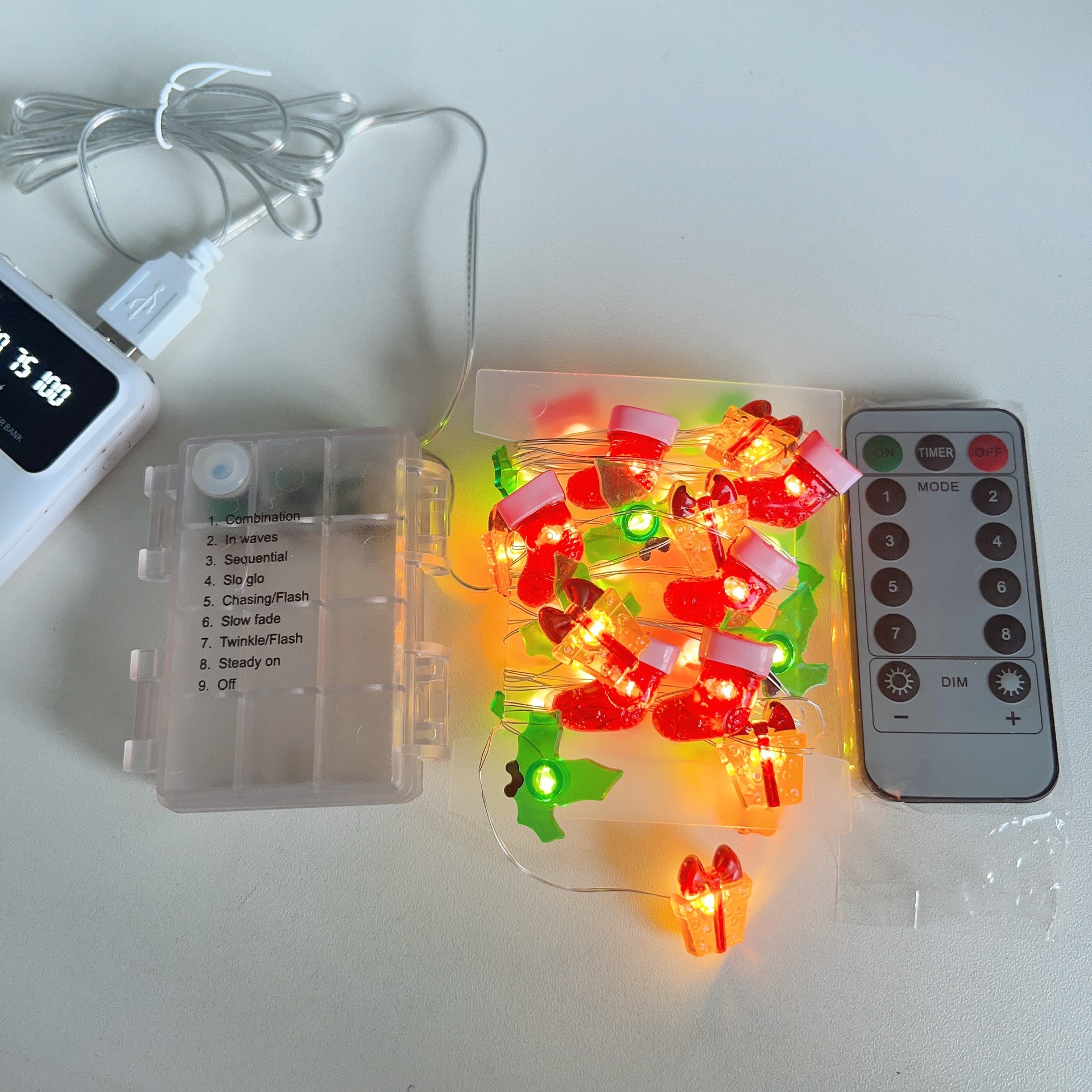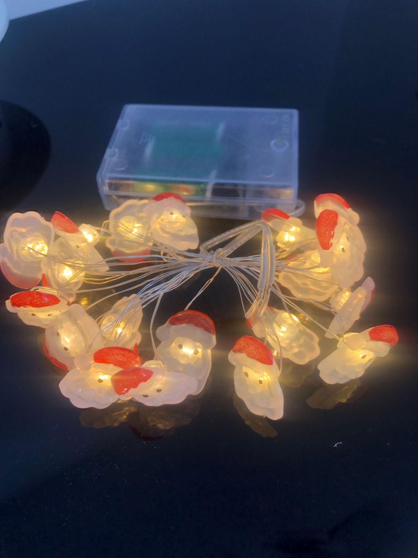 Дед Мороз; голова оленя; Красная шапка голова Санты; черная шляпа-снеговик; Ялинка; Интегрированная снежинка; Прозрачная плоская снежинка; маленькие костыли; маленькая подарочная коробка; Рождественская красная шляпа олень; звонок; 3D пятиконечная звезда; свеча; Прозрачная голова старика; милый олень; Рождественские носки; Трехмерный прозрачный снеговик; автомобиль; махающий Санта-Клаус; Рождественский щенок; пряники человечки; трехцветная конфета; Прозрачный махающий олень; Подарочная упаковка; счастливая сумка в виде снежинок; сосновые шишки; Рождественские листья (ягодные); Трехмерная елка; бородатый Дед Мороз; шапка снеговик; зеленая костыль-бабочка; лось; Рождественский олень; Рождественская голова лося; Коготь Снеговик; шарф снеговик; Рождественская шапка; цветение вишни; желтая подарочная коробка; желтый колокольчик; Пожилые люди + снеговик + елка; Носки + подарочная коробка + плоские рождественские листья; Черная шапка-снеговик + старик + голова оленя; Трехмерная елка 2; Бусины для ламп из медной проволоки (без подвесок)