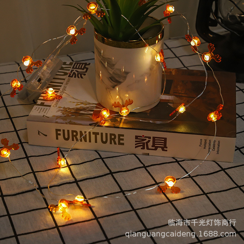 Рождественский кулон-застежка из медной проволоки, световая строка, старик, снеговик, снежинка, голова оленя, подарочная коробка, костыли, праздничная атмосфера, декоративные фонарики