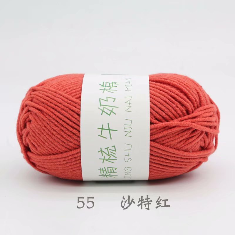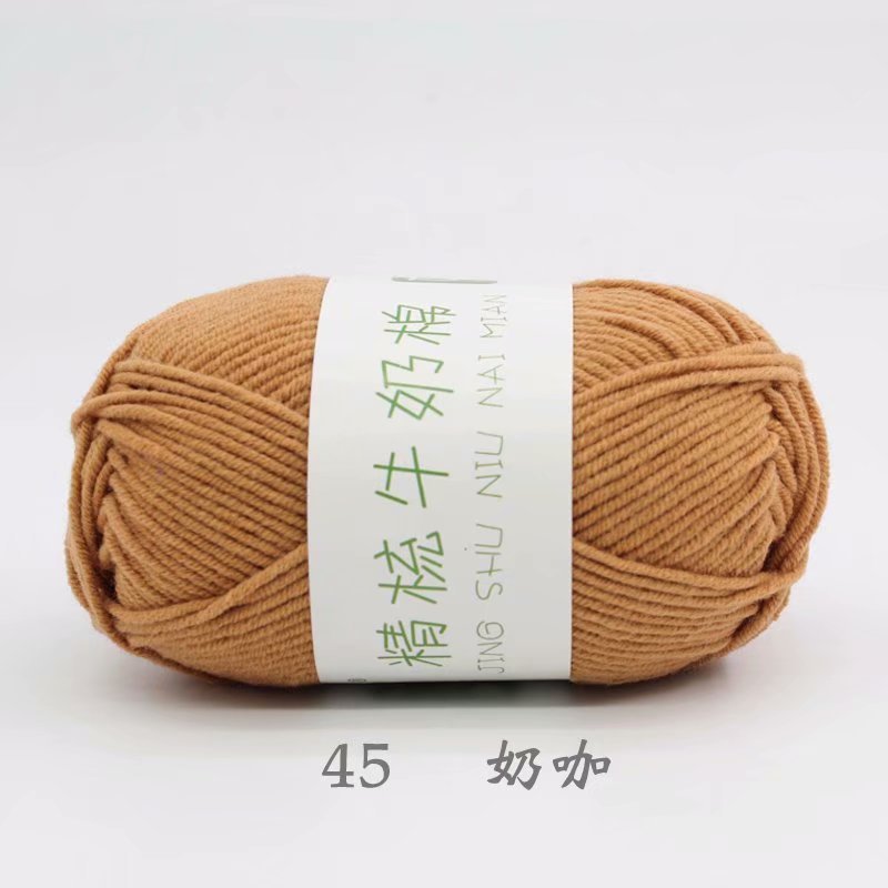 做毛线很多年了,一直从事线下销售,和阿里巴巴线上批发,这款5股牛奶棉,55色可选,标价为一两的价格,简易包装,