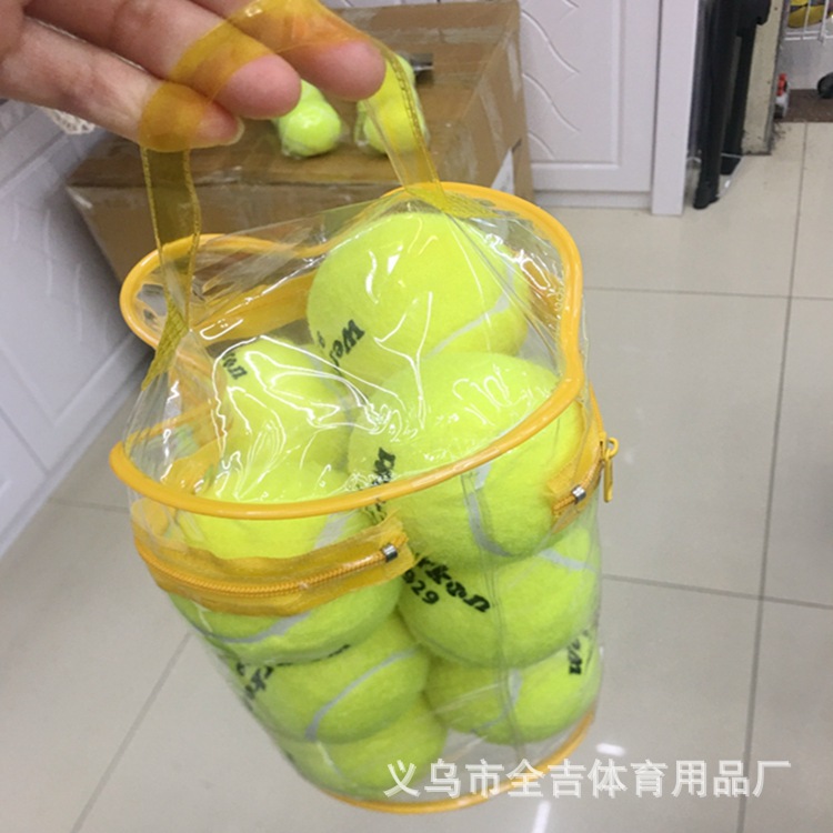 网球弹性为140米以上自由落体 软性球, 质量46.0g~53.0g,直径62mm~68.58mm,弹性1100mm~1400mm 链接价格为每袋12个网球价格