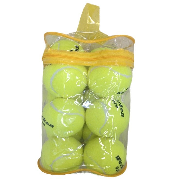 12 штук в пакете; Один человек играет в теннис с линией; Три вакуумные трубки для теннисных мячей.