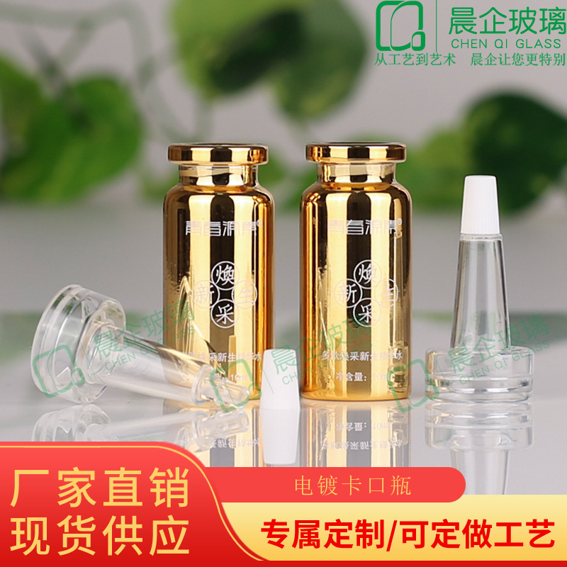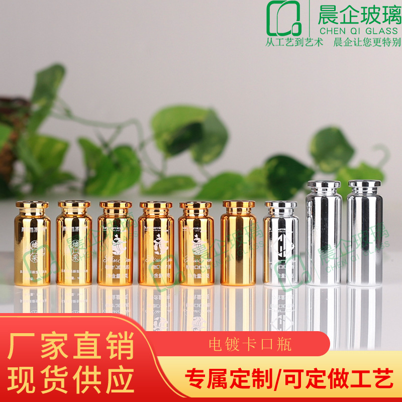 Флакон с гальваническим золотым покрытием, стеклянная бутылка с серебряной защелкой, флакон для сублимированного порошка, маленькая косметическая упаковка, средство для ухода за кожей