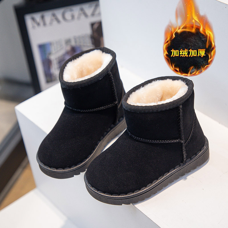 Детские зимние сапоги для мальчиков и девочек 2025 года, новые зимние короткие сапоги без застежек, замшевые хлопковые ботинки с дополнительным флисом для тепла для детей постарше