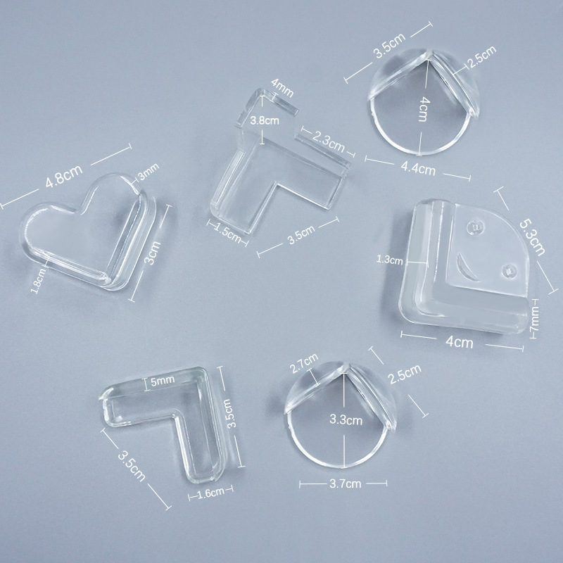 透明角有3个型号,L型,笑脸,小号球型,T型,大号加厚球型,加厚心型