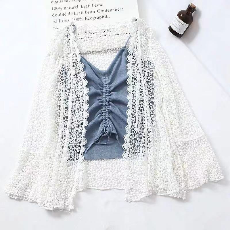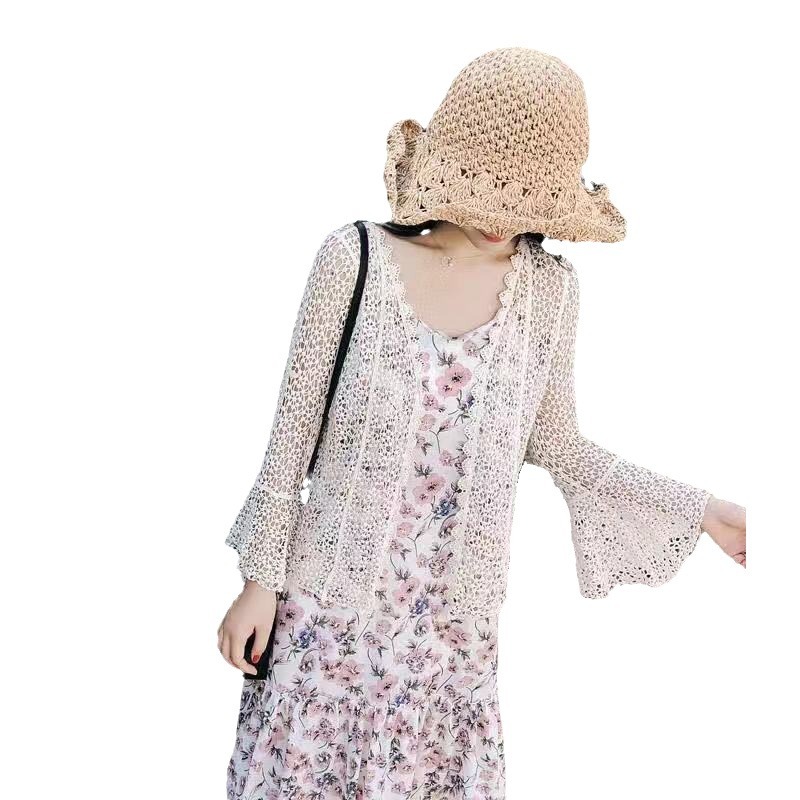 Весна-лето-осень шаль Женская юбка Уличная короткая куртка кардиган с кондиционером полый топ женский вязаный полый крючок