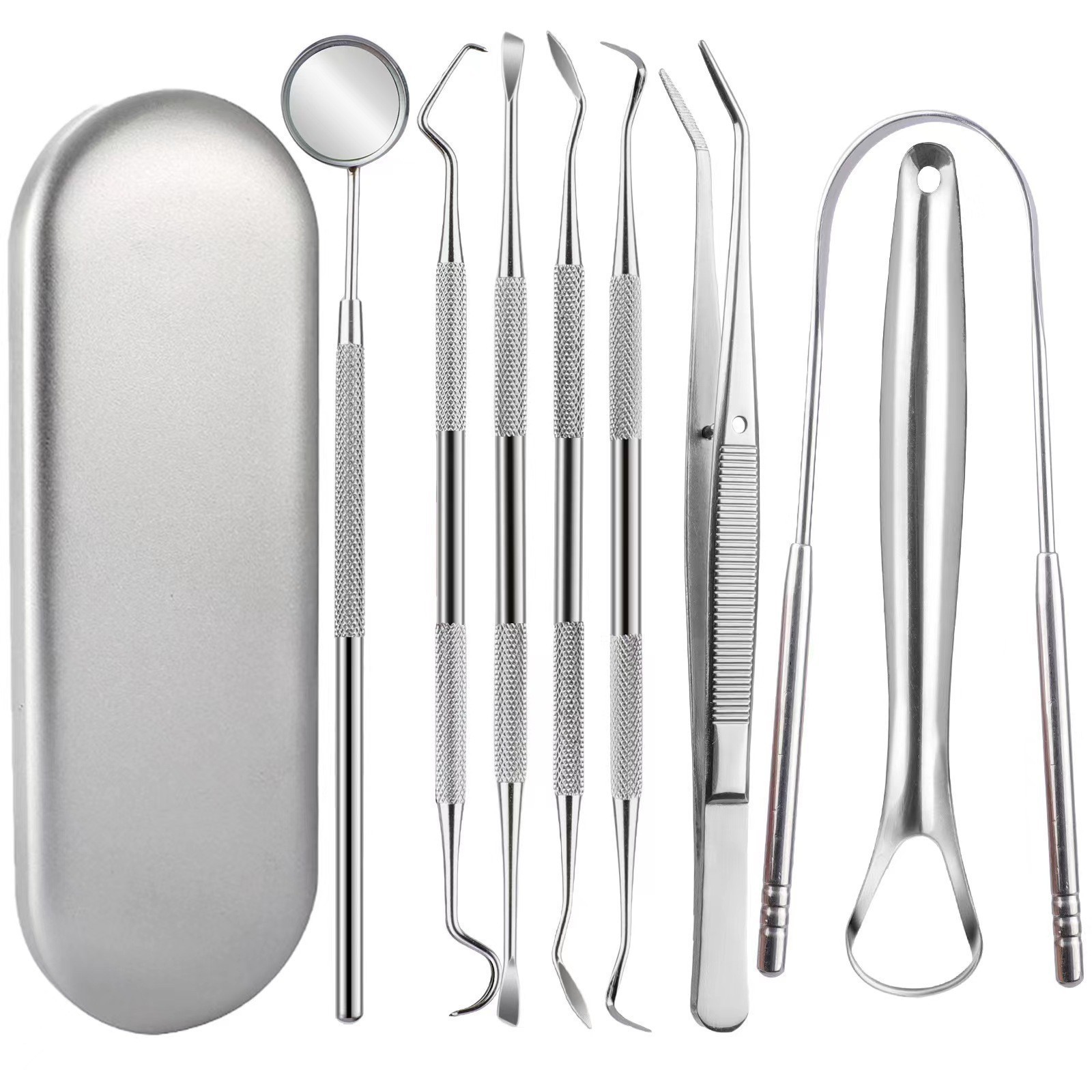 Набор из 10 предметов [Кожаный чехол для стоматолога]; Светящаяся чистка зубов, набор из 9 предметов, железная коробка; 8 U-образных стоматологических инструментов + железная коробка; 7 U-образных стоматологических инструментов + железная коробка; Набор инструментов для чистки зубов из 7 предметов, железная коробка; Зеркало в железной коробке + пинцет + щуп + мотыга + серп + сборщик; Зеркало в железной коробке + пинцет + щуп + мотыга + серп + 3-точечная игла; Зеркало для рта + пинцет + зонд + мотыга + серп + железный ящик; Зеркало для рта + пинцет + зонд + мотыга + железный ящик; Зонд + мотыга + серп + железный ящик; Зеркало для рта + пинцет + зонд + железный ящик; 9 светящихся стоматологических инструментов + железная коробка; 8 светящихся стоматологических инструментов + железная коробка; 7 светящихся стоматологических инструментов + железная коробка; Светящийся стоматологический набор из 6 предметов + железный ящик; Светящийся стоматологический набор из 5 предметов + железный ящик; Набор из 4 предметов в железной коробке - светящееся стоматологическое зеркало + мотыга + щуп + пинцет; Набор из 3 предметов в железной коробке [освещаемое зеркало для рта + щуп + пинцет]; Набор стоматологических инструментов из 3 предметов-пластиковая карта; Зонд 304 [карточный]; 304 Очиститель зубов для мотыги [карточный]; 304 Очиститель зубов серпа [карточный]; Зонд [1000 штук в коробке]; Зеркало для рта [500 штук в коробке]; Большой кикер для ногтей серебристый с двойной головкой-16,5см; Чиститель для зубов в форме серпа [1000 штук в коробке]; Чиститель зубов типа «кулак» [1000 штук в коробке]; Пинцеты [700 штук в коробке]; Двусторонний периодонтальный напильник [1000 штук в коробке]; U-образный скребок для языка - в упаковке [1000 штук в коробке]; Крючок треугольный [1000 штук в коробке]; Стоматологический молоток [1000 штук в коробке]; пинцет для кронштейна; Двусторонний скребок для языка с большим отверстием; Маленький скребок для языка 420; Универсальный тип-наполнитель 02; Обычно используемый тип-наполнитель 04; Профессиональная полировальная машинка 06; Профессиональный восковой нож 07; Профессиональный нож из смолы 09; Нож универсальный-воск 10