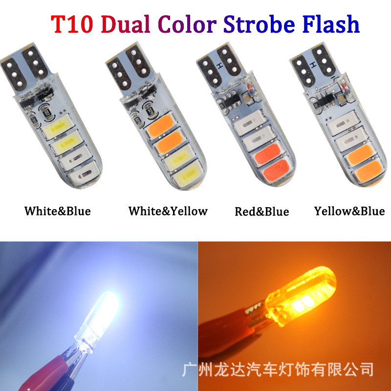 Мотоцикл светодиодный маленький фонарь двухцветная вспышка силиконовая T10 5730 8SMD Автомобильный светодиодный широкий свет подсветка номерного знака