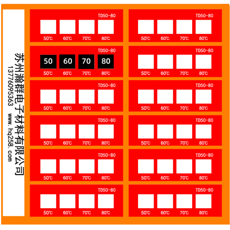 2.特殊需要可根据客户要求制作,如制作不同额定温度、不同超温颜色、不同规格的变色测温贴片。