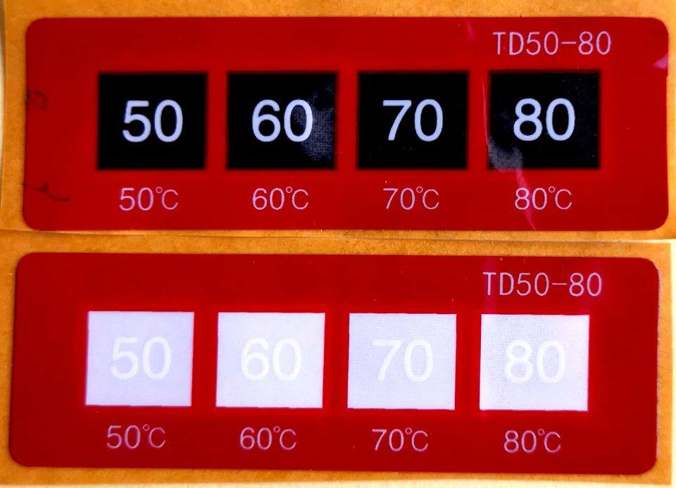 如果监测部位因温度过高造成测温贴片超温变色,冷却下来后测温贴片并不恢复原来的白色,呈记录状态。