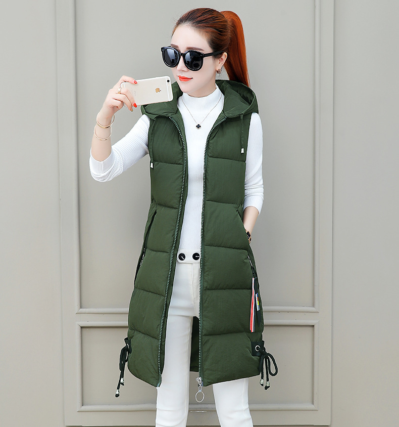 Женский хлопковый жилет, осенне-зимняя куртка, новая женская одежда для внешней торговли, корейский стиль, приталенный хлопковый жилет средней длины, безрукавка.