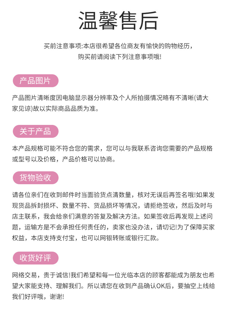 破损补寄:收货前注意是否有破损,有问题及时联系我们;