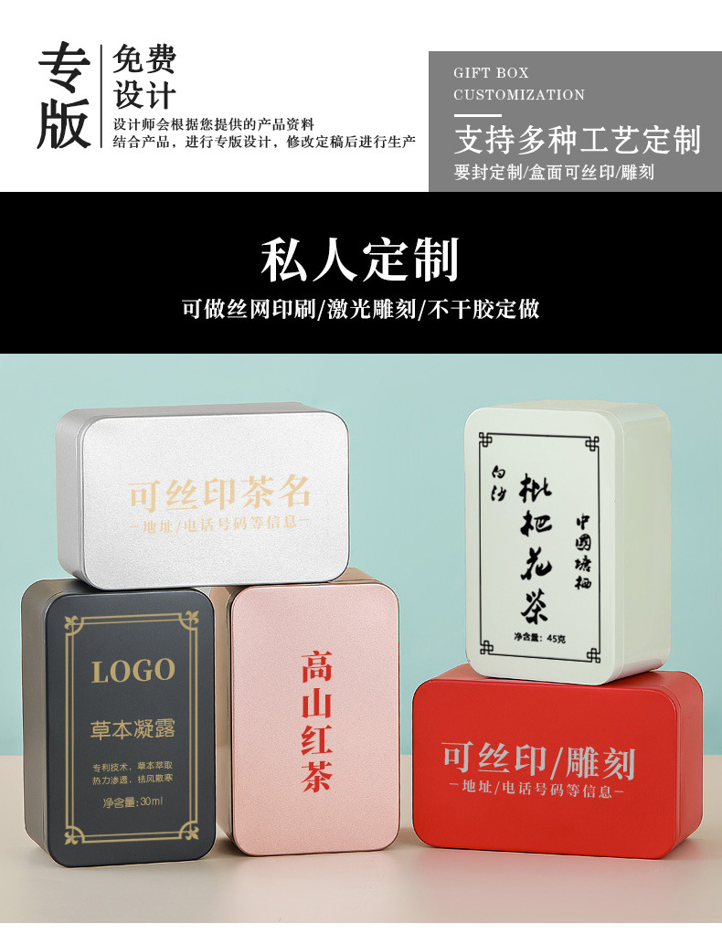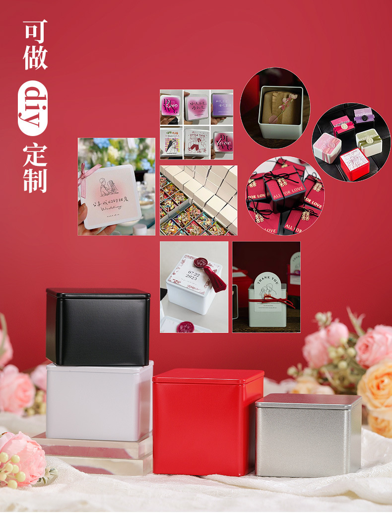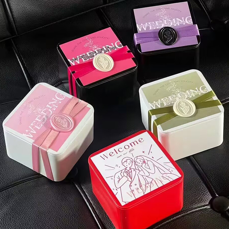 Квадратная жестяная коробка для свадебных конфет, банка для конфет, жестяная банка для чая, жестяная коробка для косметики, 100 г запечатанная чайная банка
