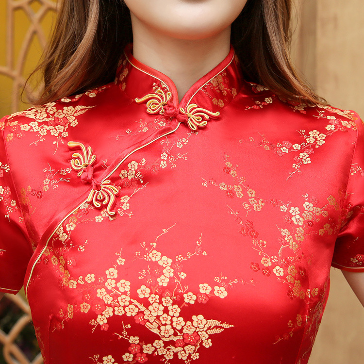 Реальный выстрел нового Чонсам С Коротким Рукавом Тост платье оптом цветок сливы стенд воротник с разрезом свадебный банкет Тан платье Чонсам платье женщины