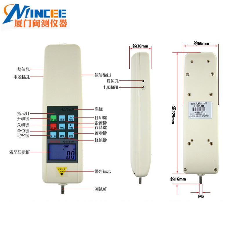HF系列数显推拉力计是一种高精度小型便携式拉力、压力测试仪器。广泛应用于高低压电器、电子、五金制锁、汽车配件、打火机及点火装置、制笔、轻工、建筑、渔具、纺织、化工、机械、IT等行业和科研机构作拉压负荷、插拔力测试、破坏性试验等,是数字型的新一代拉压力测试仪器。