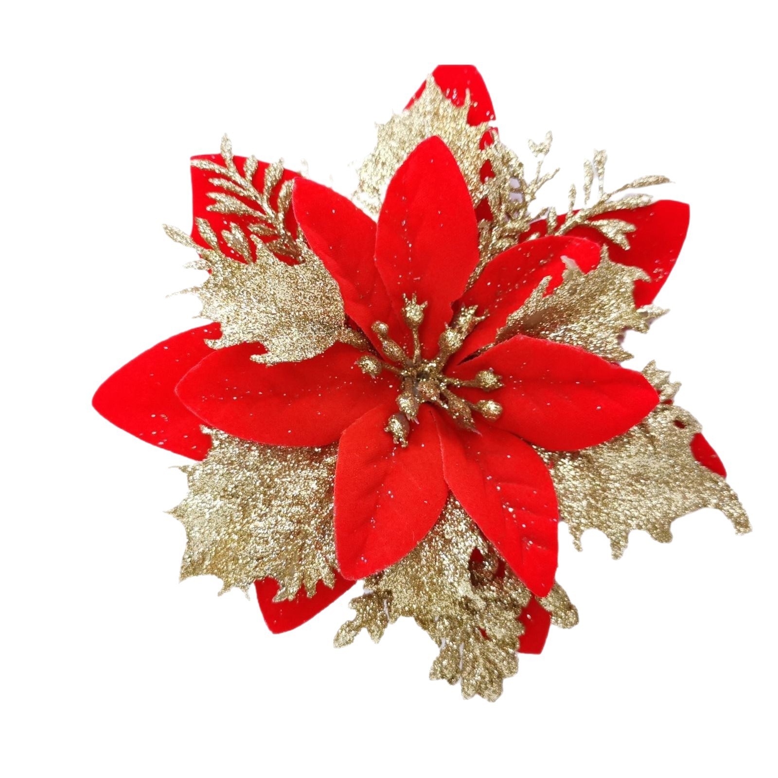 Трансграничный 14 см Рождественский цветок Рождественские украшения Рождественские елочные аксессуары Золотой порошок пластиковая цветочная гирлянда аксессуары кулон из ротанга