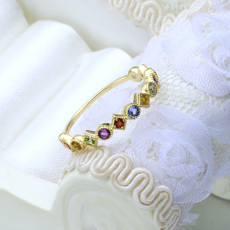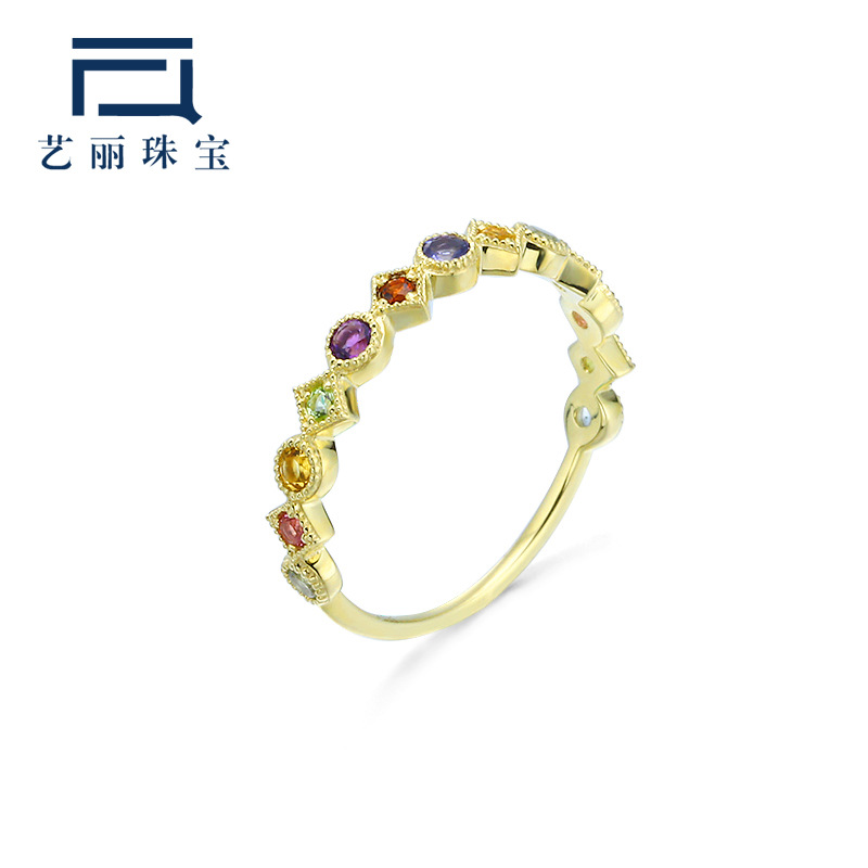 Yili ювелирные изделия 9K золото геометрический цвет натуральный камень кристалл кольцо женское простые свежие японские Ручные украшения прямые продажи