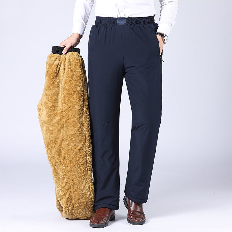 Зимние хлопковые брюки для среднего и пожилого возраста, мужская верхняя одежда, прямые теплые брюки, утепленные повседневные брюки для пап среднего возраста на флисовой подкладке