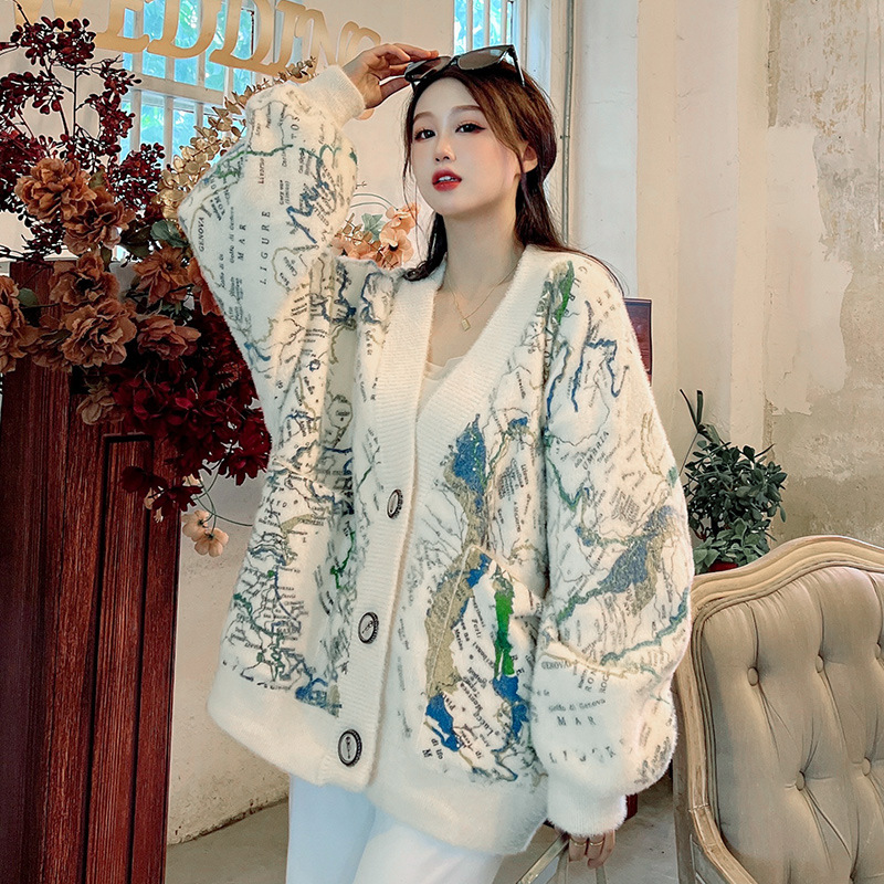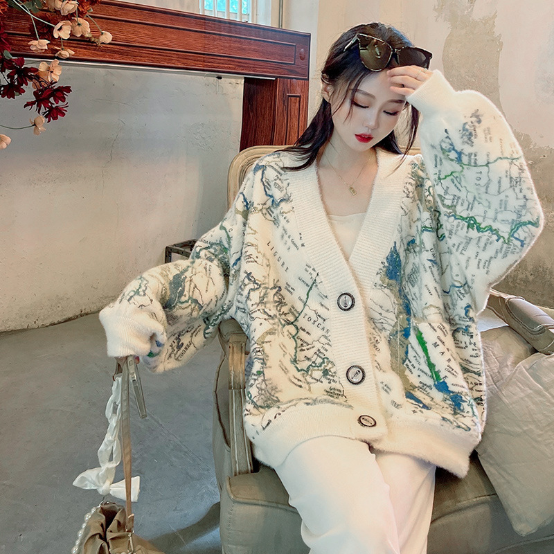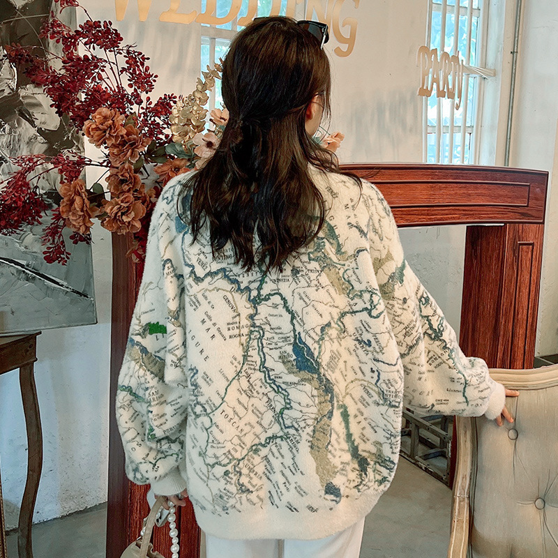22 осень и зима Новый толстый свежий узор сладкой земли с принтом имитация норковой бархатной норковой шубы Свободный кардиган для похудения