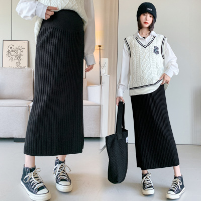 Трикотажная юбка для беременных средней длины с поддержкой живота, новинка осени-зимы 2024, с высокой талией, облегающая, до колена, базовый слой