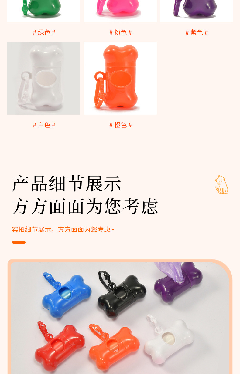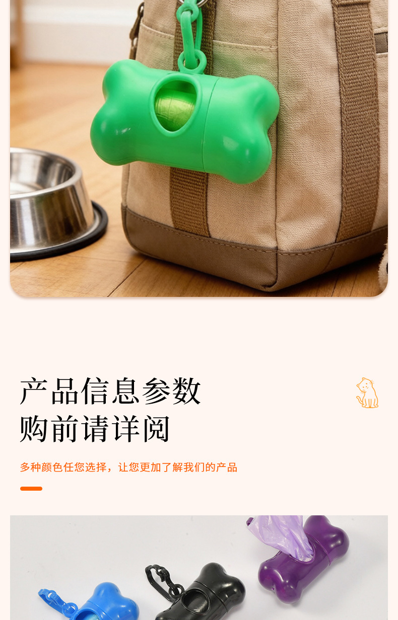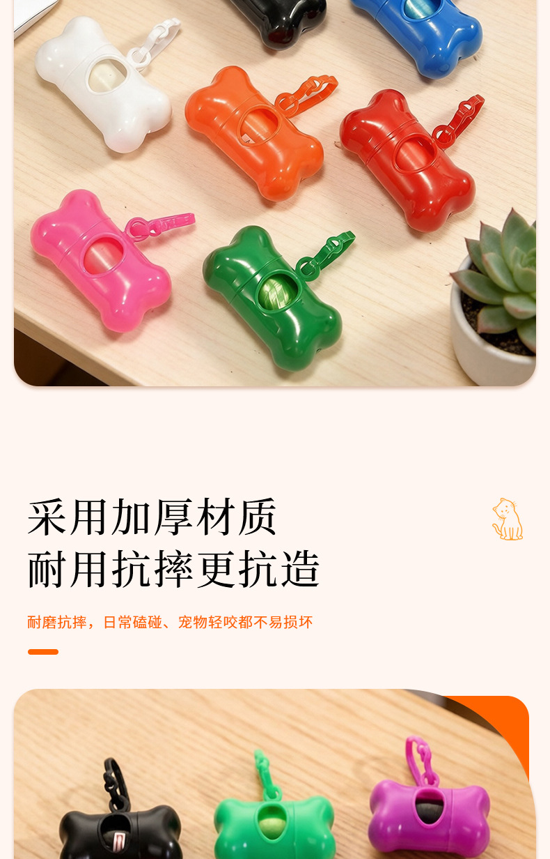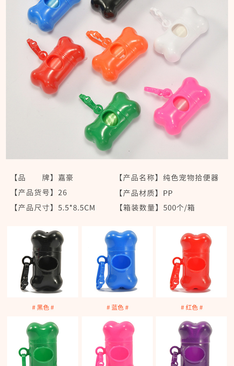 Оптовые пакеты для уборки за питомцами и совок для уборки экскрементов в наборе однотонных цветов, пакеты для уборки собачьего помета с диспенсером в форме косточки.