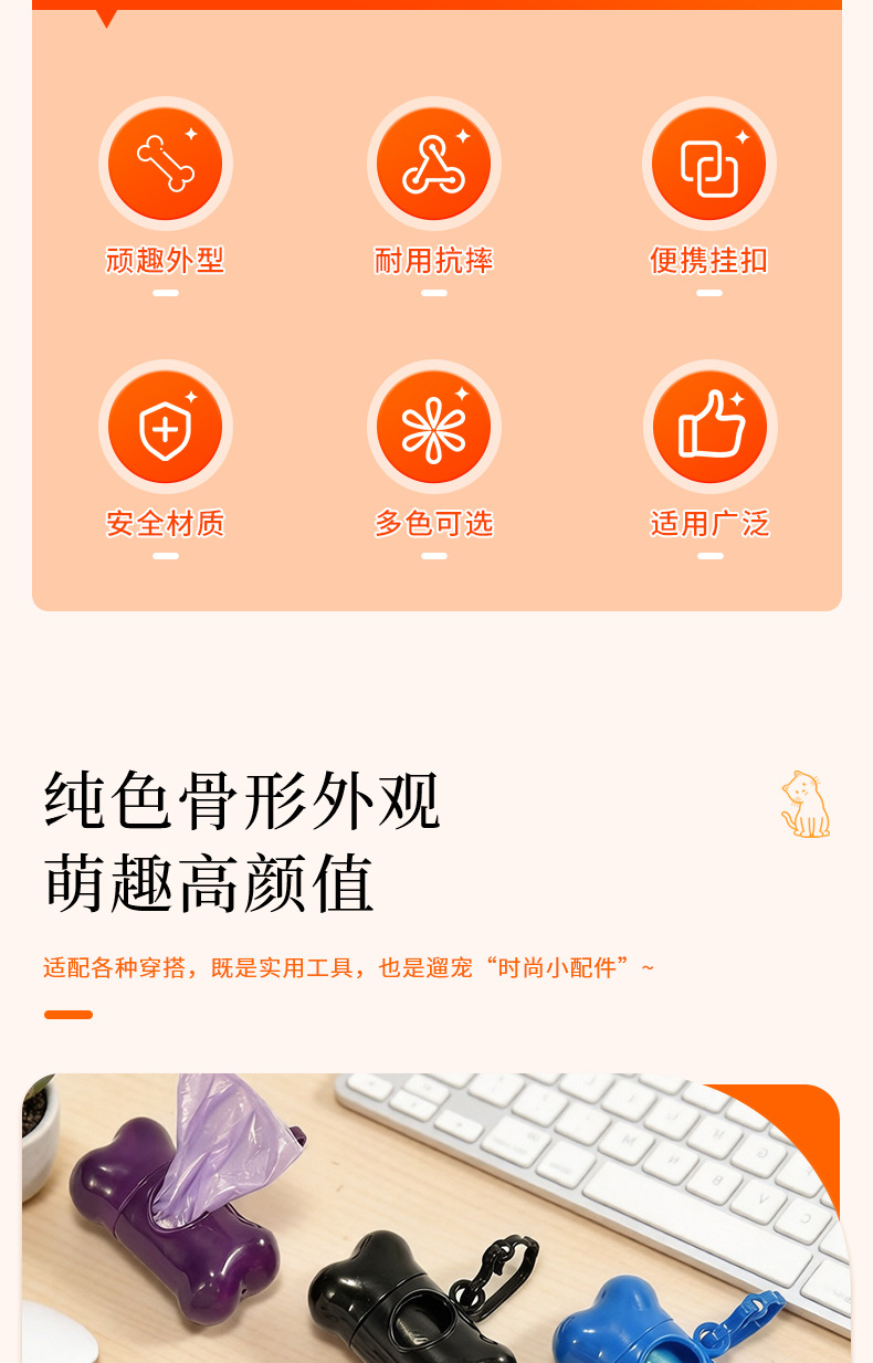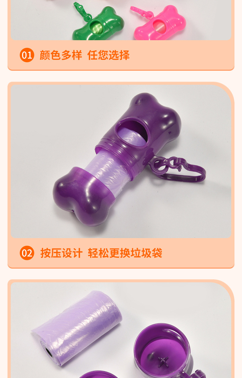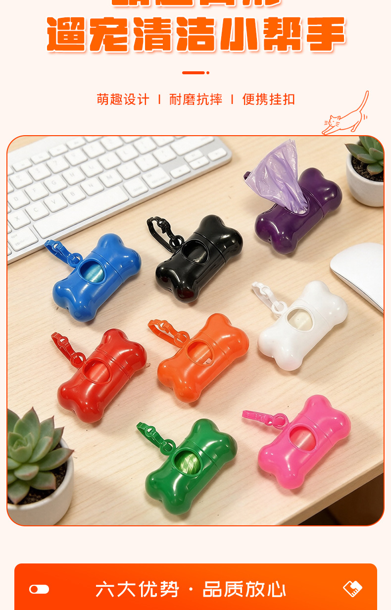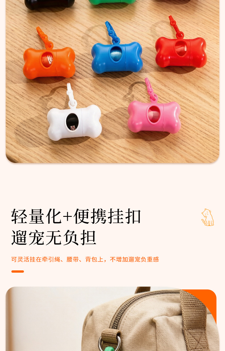 Оптовые пакеты для уборки за питомцами и совок для уборки экскрементов в наборе однотонных цветов, пакеты для уборки собачьего помета с диспенсером в форме косточки.