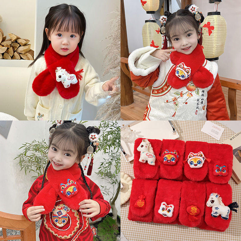 Новый детский шарф 2025 года для осени и зимы, плюшевый, на Новый год и Рождество, милый, утолщенный, с имитацией меха кролика, детский шарф-грелка для шеи